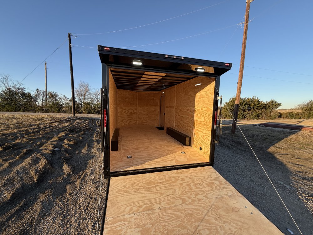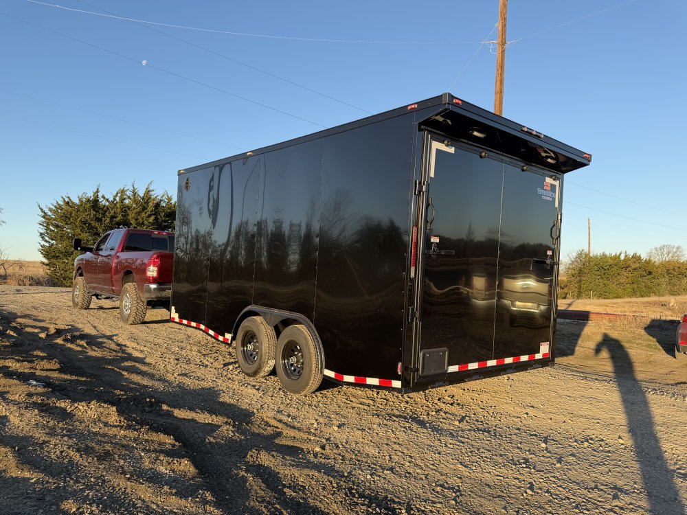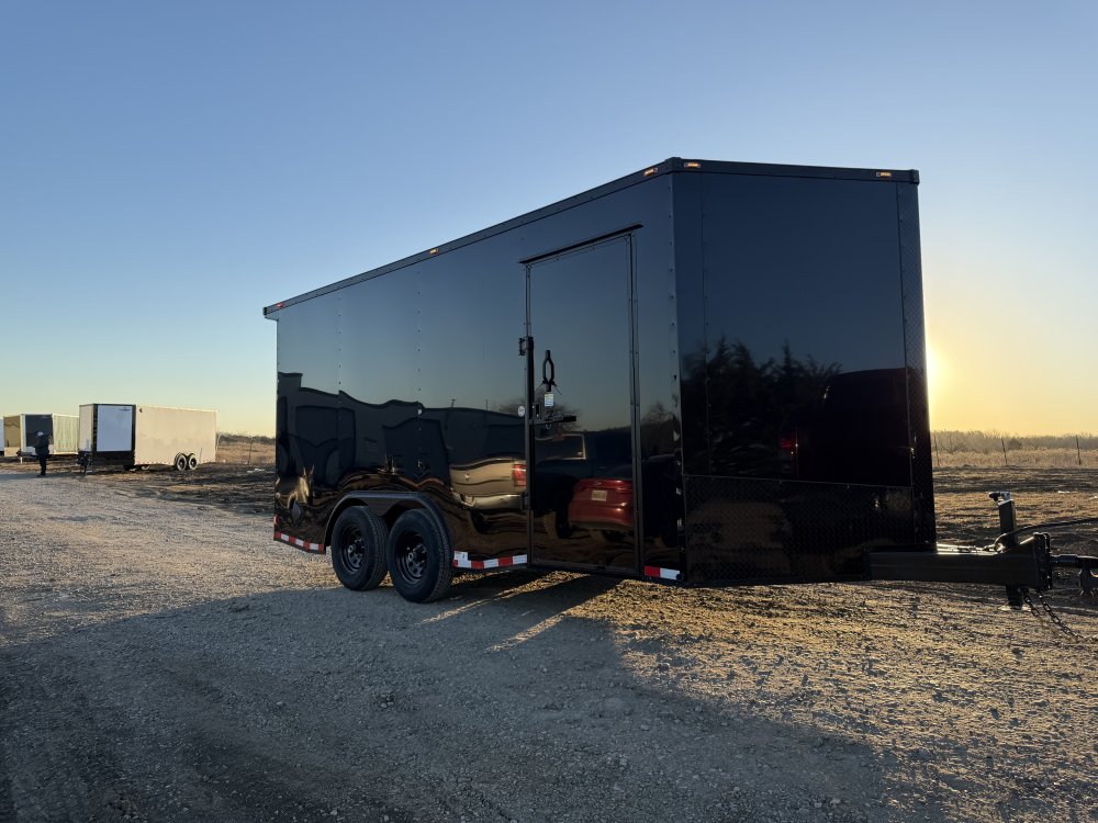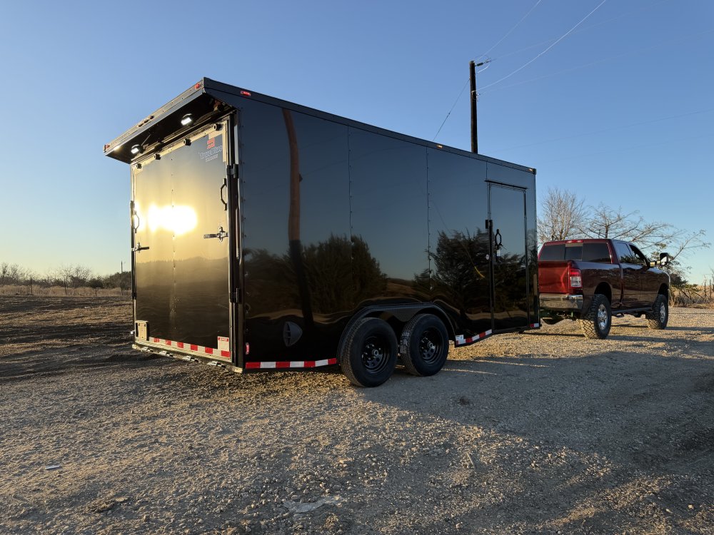 0.08" AP Polycore Siding, 7' Height, Adjustable Coupler, BLACK OUT PKG, Dovetail, Electric Brakes, Ramp Gate, Rear Load Lights, RV Latch w/ Keys, Semi-Screwless Exterior, Single Piece Aluminum Roof
