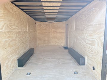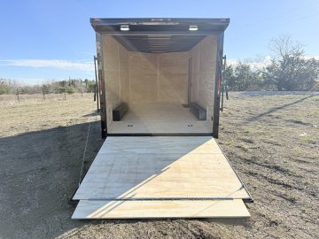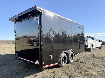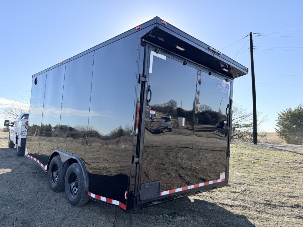 0.08" AP Polycore Siding, 7' Height, Adjustable Coupler, BLACK OUT PKG, Dovetail, Electric Brakes, Ramp Gate, Rear Load Lights, RV Latch w/ Keys, Semi-Screwless Exterior, Single Piece Aluminum Roof