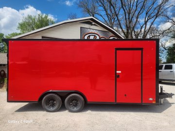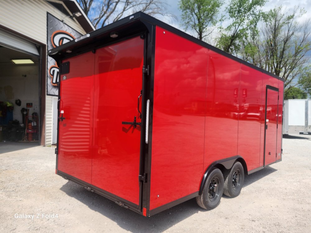 8.5x18 Alpha Seris, .080 Exterior Victory Red, Translucent Roof, 2-5200 lb Axles, Brakes on Both Axles, Rear spoiler w/lights