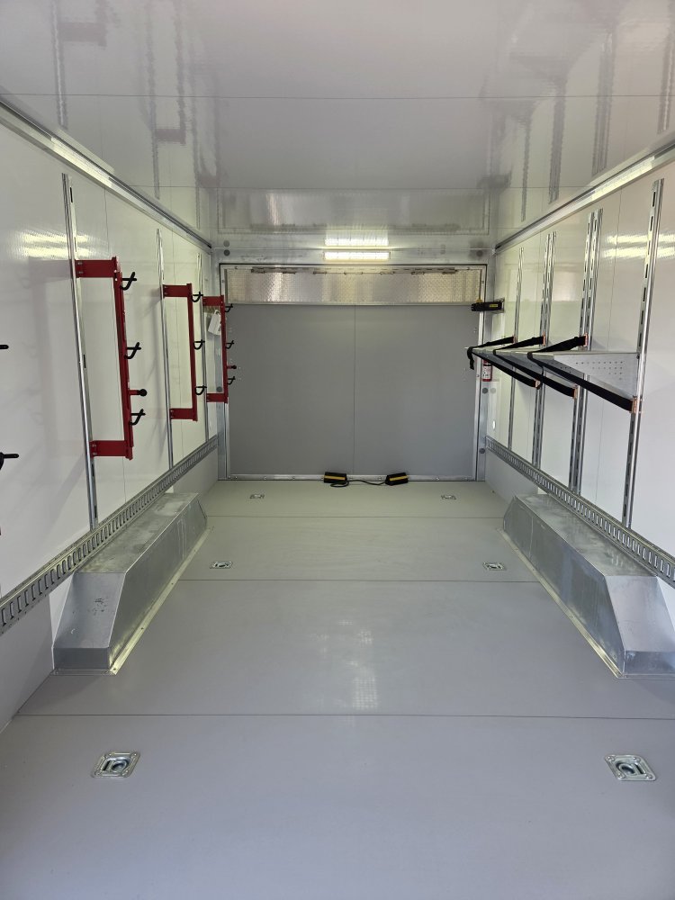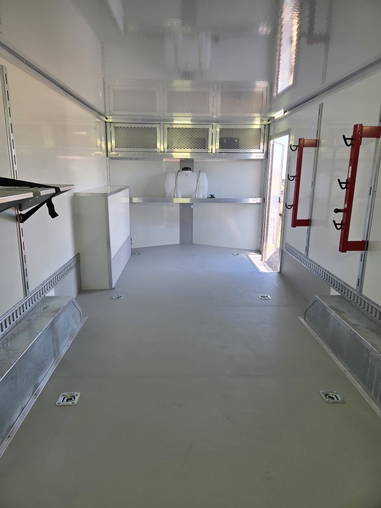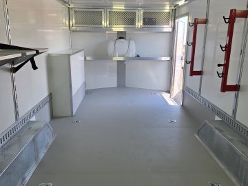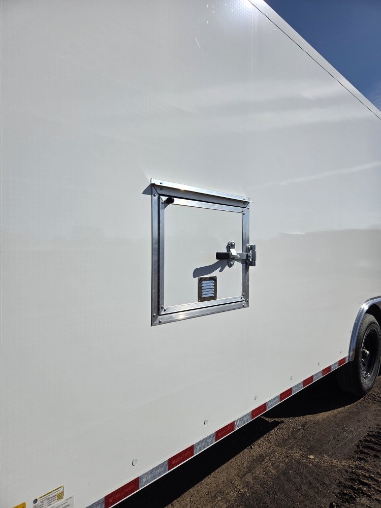 Barlock on Door, BLACK OUT PKG, Finished Interior, Ramp Gate, Rear Spoiler w/ Load Lights, Rock Shield, Screwless Exterior, Side Door, Spare Mount, Spare Tire, Stabilizer Jacks, Upper Cabinet
