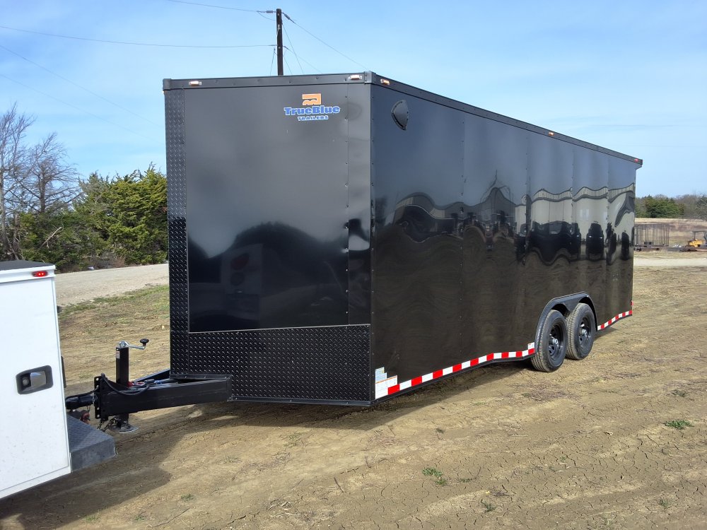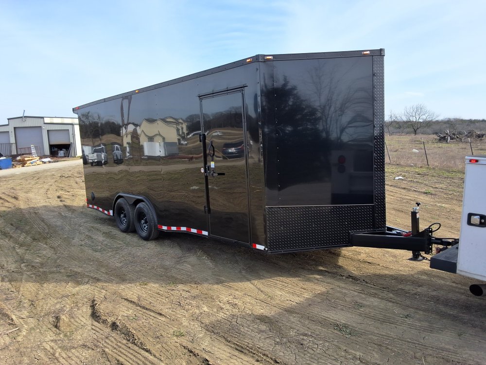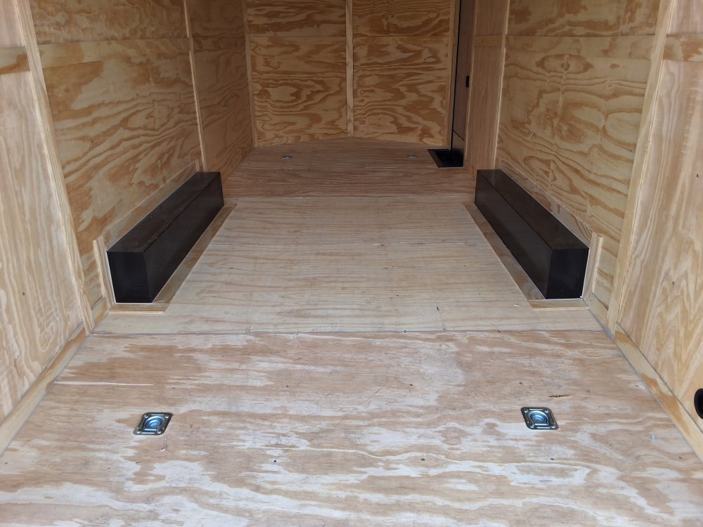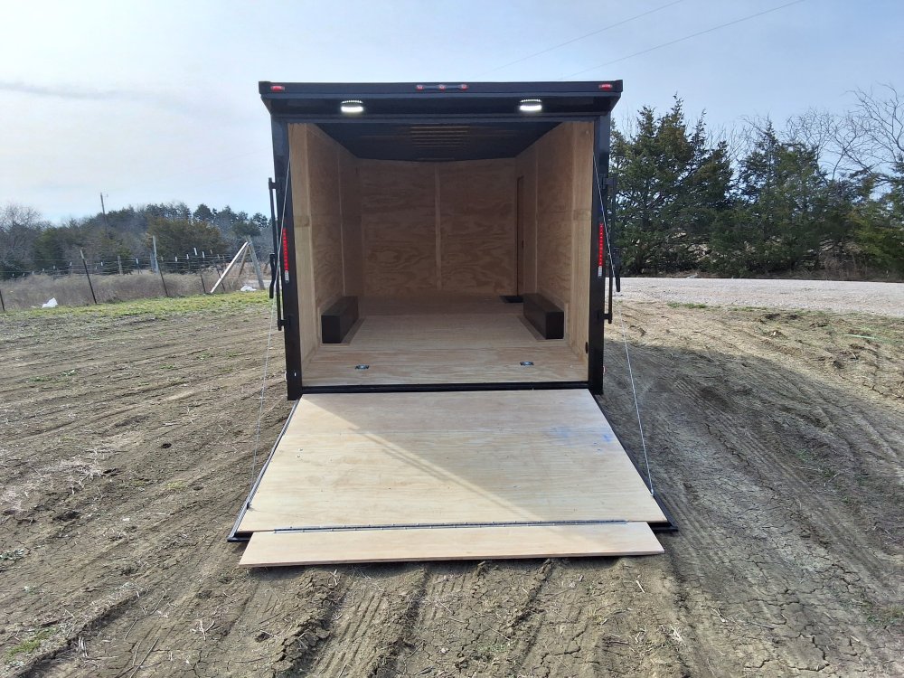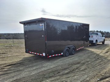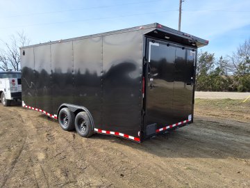 0.08" AP Polycore Siding, 7' Height, Adjustable Coupler, BLACK OUT PKG, Dovetail, Electric Brakes, Ramp Gate, Rear Load Lights, RV Latch w/ Keys, Semi-Screwless Exterior, Single Piece Aluminum Roof