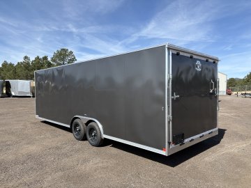 New 2027 Big Horn 8.5ft x 24ft 10k Tandem Axle Bumper Pull Enclosed w/6.6ft walls & Ramp Door w/ Spring Assist (Charcoal)