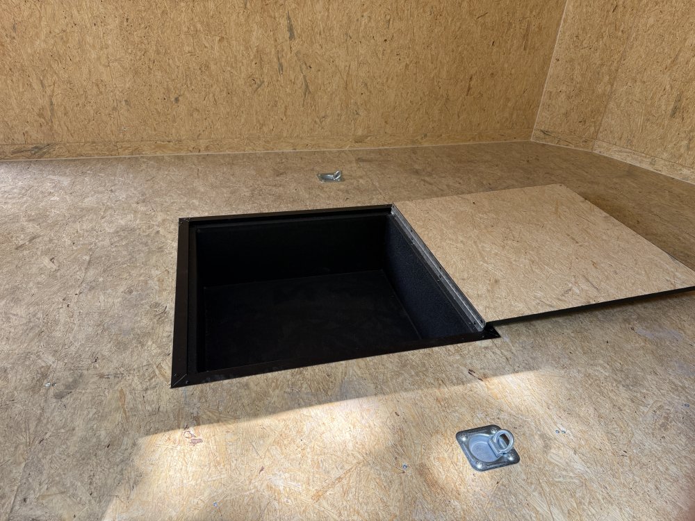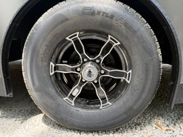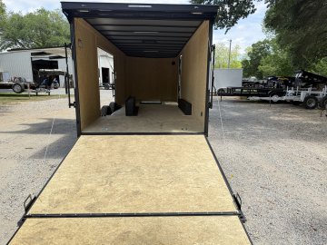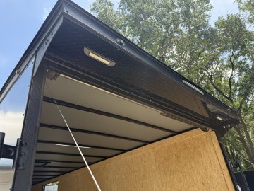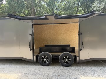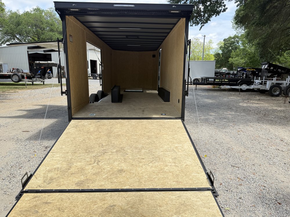 6" Additional Height; 5200# Torsion Axles; Spoiler - Includes 2 - 15" White Down Lights; Spare Tire or Tools Compartment; Round V-Nose; Ultimate Escape Door; Split Axle; Black Gold Package; 235/80R16 Black Liger Tires; Polycore Charcoal Exterior; Ramp Door