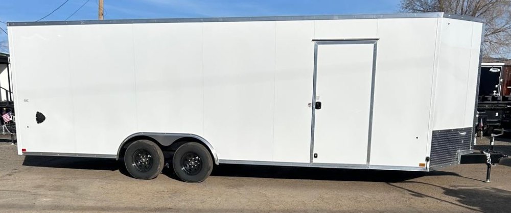 The 8.5x24 Jasper SE Flat Top Sloped V-Nose Enclosed Trailer offers spacious cargo capacity and reliable protection for equipment, vehicles, and valuable gear. The sloped V-nose design improves towing stability while maximizing interior space, making this trailer a strong choice for contractors, motorsports hauling, and business use across Northern Nevada.