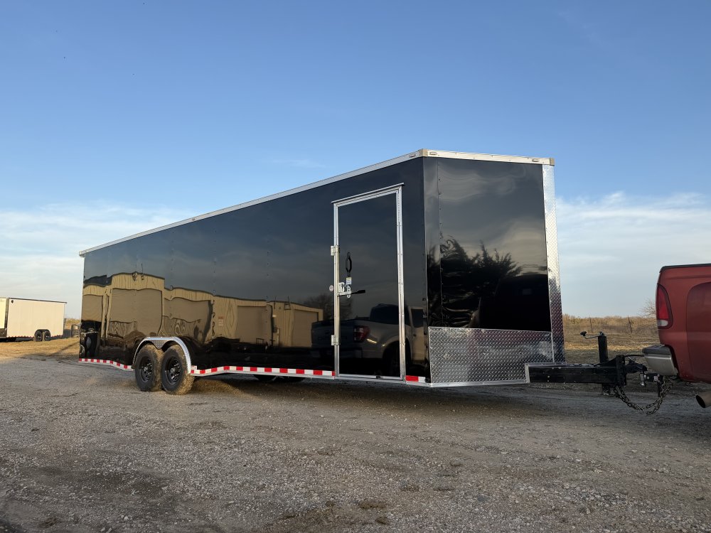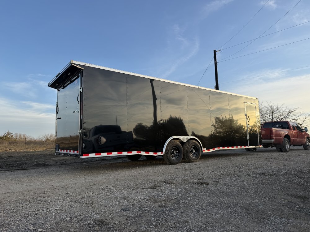 NATM Certified | 2"x6" Square Tube Frame | Tandem 7,000 lbs Axles - EZ Lube Hubs | Electric Brakes On Both Axles| 0.08" Polycore Siding | 16" OC Frame Cross-Members | 16" OC Wall Cross-Members | 16" OC Roof Cross-Members | (4) D-Rings On Floor | Tail Spoiler Package w/ Loading Lights w/ Outside Switch | 2 5/16" Bulldog Coupler | 7,000# Jack | Single Piece Aluminum Roof | Interior Height: 7' | 3/4" Plywood: Ramp & Floor | 3/8" Plywood: Walls | LED Lights: Running, Tail, Lic. Plate & Int Lights w/ Switch | Tire/Wheel - ST225/75R15 - 10ply | Custom Fabrication On All Headers and Corners Post | Side Door Dimensions: 36"x78" | Ramp Gate / Barn Doors On Rear Of Trailer (Ramp Gate Dimensions: 90"Wx80"H) | 1 Year Manufacturer Workmanship Warranty | 5 Year Polycore Warranty