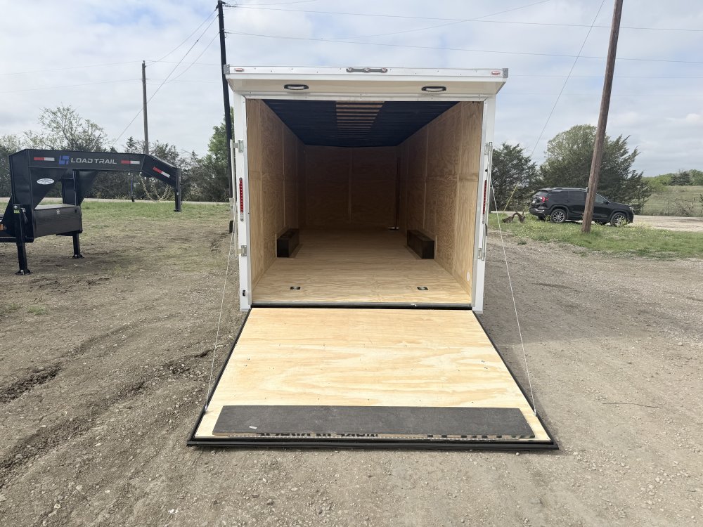 0.08" AP Polycore Siding, 7' Height, Adjustable Coupler, Dovetail, Electric Brakes, Ramp Gate, Rear Load Lights, RV Latch w/ Keys, Semi-Screwless Exterior, Single Piece Aluminum Roof