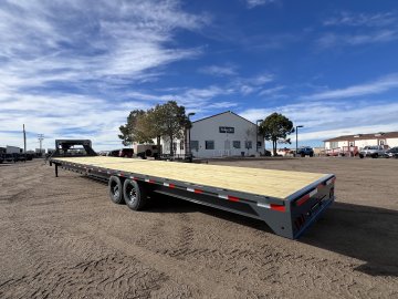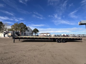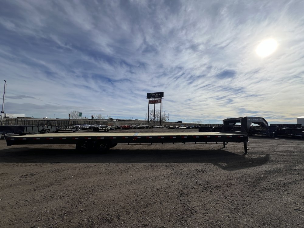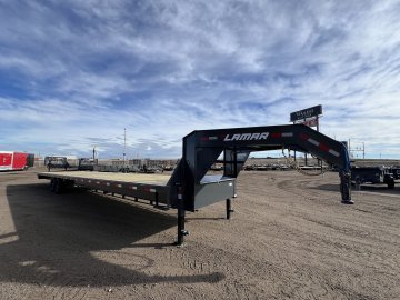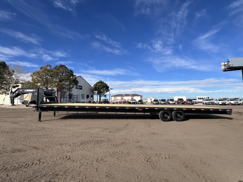 New 2026 Lamar 8.5ft x 40ft 14k Tandem Axle Extreme-Duty Gooseneck Flatbed & Rear Slide-In Ramps [8-ft x 16-in] (Lamar Gray)
