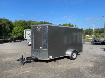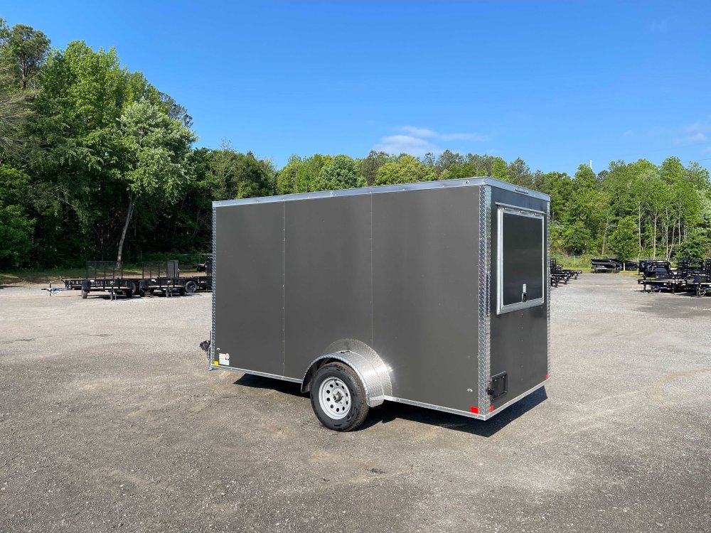 New 2025 Diamond Cargo 6ft x 12ft 3.5k Single Axle Bumper Pull Enclosed w/6.5ft walls & Concession Door (Charcoal) High Quality Trailer Charcoal (75 in wall height) 1 - 3500-Lb Dexter Standard Spring Suspension w/EZ Lube Drop Axle(s) (6PR Tires) Idler Axle(s) W/O Brakes Steel Frame / Aluminum Skin Construction w/24-in Crossmembers (3/4-in Plywood Floor) 1 - A-Frame Drop Leg 5000 lb Jack Bright Aluminum Diamond Plate Fenders LED Exterior Lighting Pkg (w/Cold Weather Harness) Concession Door A/C & Electrical Package Super Premium .080 Polycore Skin Triple Tube Tongue 2-5/16-in A-Frame Cast Coupler No haggle, no BS, no hidden fees, no nickel and diming. Call 770-608-6882, or visit www.georgiatraileroutlet.com Georgia Trailer Outlet 45 Carson Loop NW Cartersville, GA 30121 Contact us for warranty information.