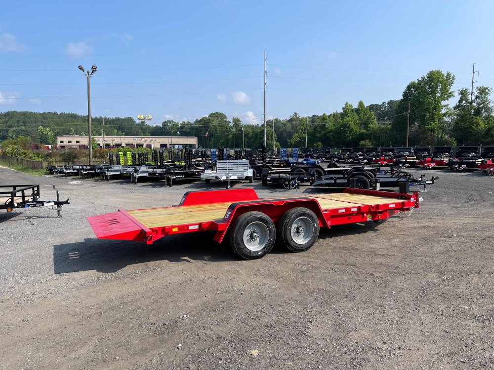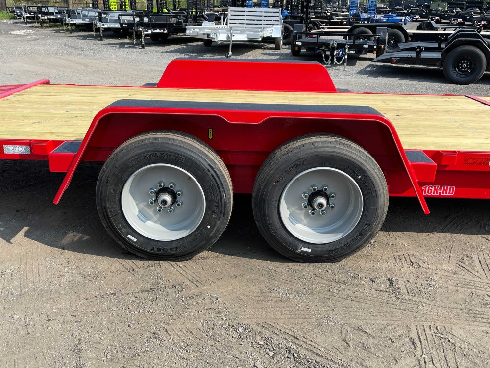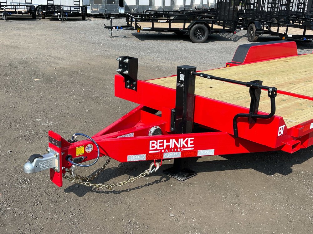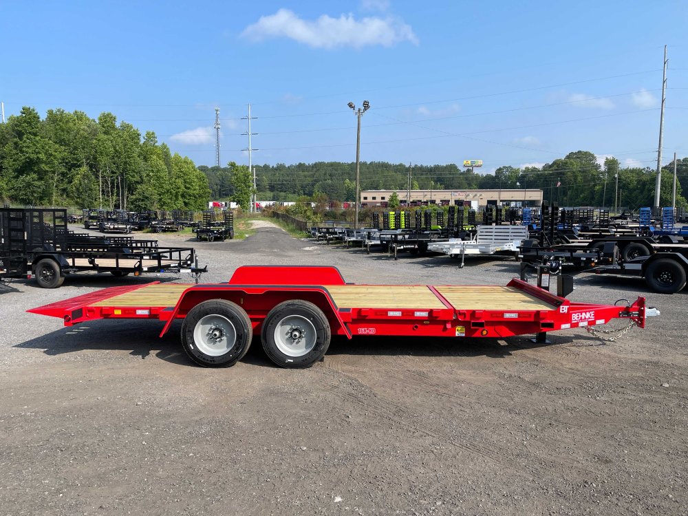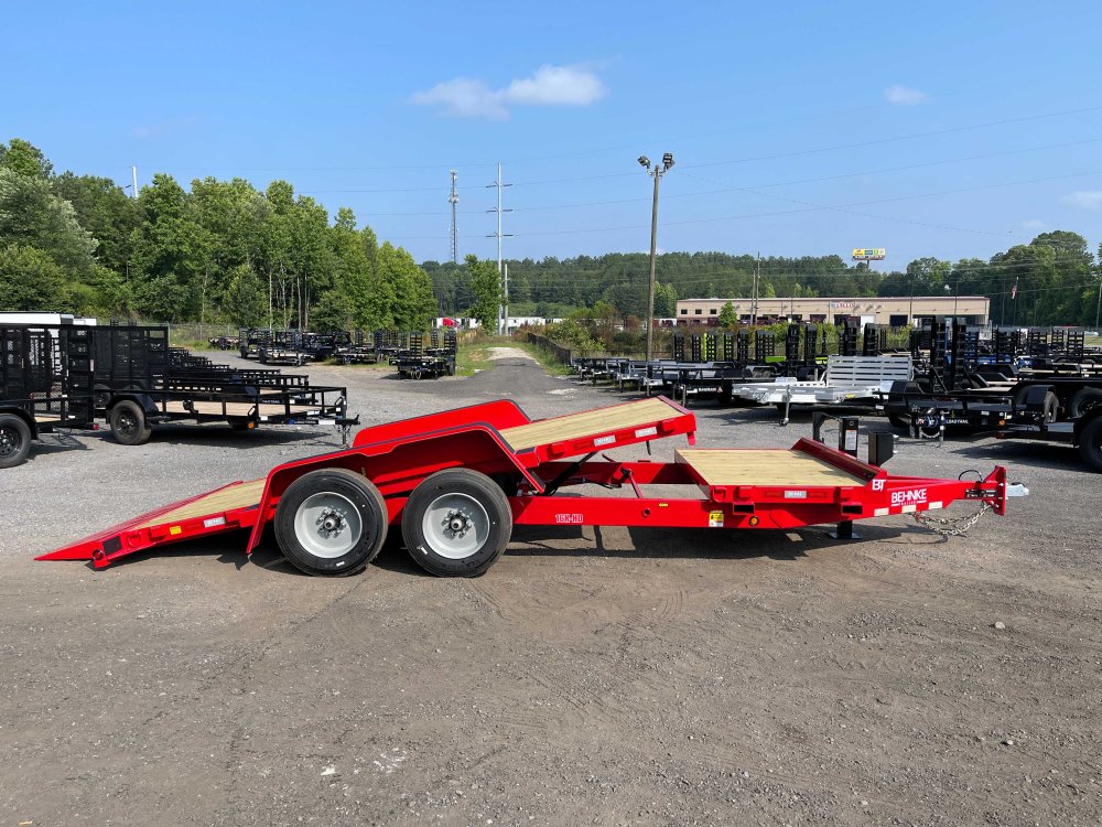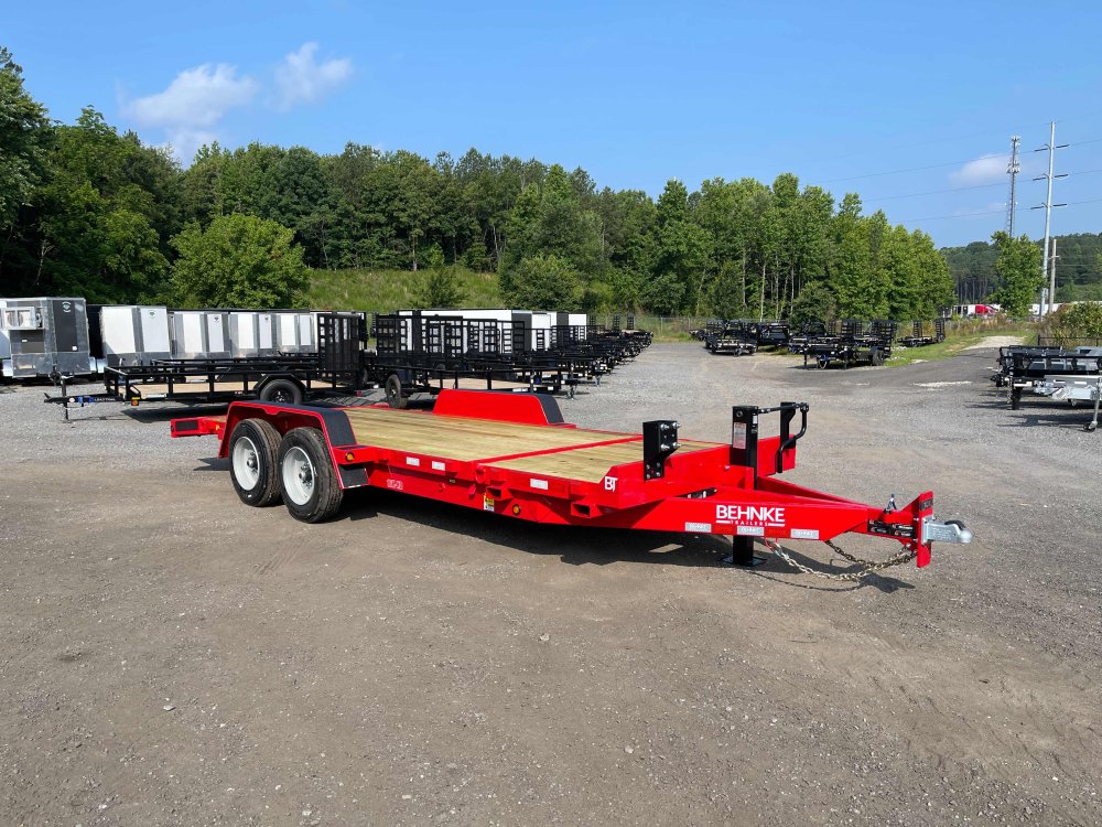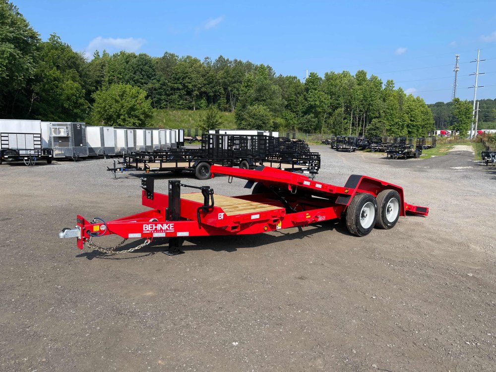 New 2026 Behnke 7ft x 20ft 16k Tandem Axle Bumper Pull Tilt Deck & Gravity Tilt Ramp [83-in x 16-ft] (Red) High Quality Trailer Red (w/ Primer) 2 - 8000-Lb HD -Up- Torsion Axle(s) w/EZ Lube (16PR Tires) Electric Forward Self-Adjusting Brakes on 2 Axles Steel Construction w/12 Crossmembers (2-in PT Wood Floor) 1 - Spring Loaded Drop Leg 12000 lb (1-Speed) Jack Steel Smooth Fenders (Weld-On) LED Exterior Lighting Pkg (w/Cold Weather Harness) Gravity Tilt Ramp [83-in x 16-ft] 4-ft Stationary Deck HD Fork Holders 1-Spare Tire Mount 2-5/16-in Adjustable Coupler No haggle, no BS, no hidden fees, no nickel and diming. Call 770-608-6882, or visit www.georgiatraileroutlet.com Georgia Trailer Outlet 45 Carson Loop NW Cartersville, GA 30121 Contact us for warranty information.