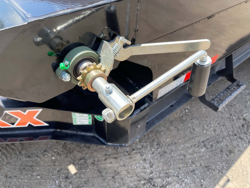 2-Way Spreader Gate, Rear Slide-In Ramps [7-ft x 16-in], Mesh Tarp Kit w/Pull Bar, Scissor Hoist w/HD KTI Pump & 5 Amp Battery Charger, 2-5/16-in Adjustable Coupler