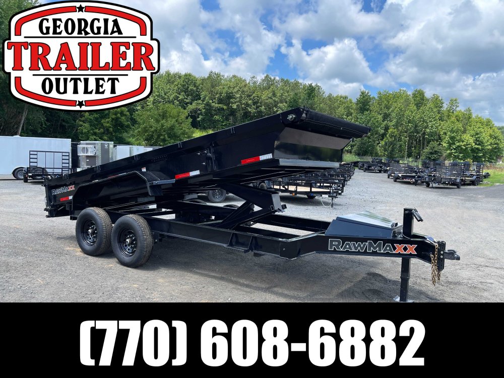 New 2025 RawMaxx 7ft x 16ft 14k Tandem Axle Bumper Pull Dump w/1.6ft walls & 2-Way Spreader Gate (Jet Black) High Quality Trailer Jet Black (w/ Primer) 2 - 7000-Lb Standard Spring Suspension w/EZ Lube Axle(s) (10PR Tires) Electric Forward Self-Adjusting Brakes on 2 Axles Steel Construction w/16-in Crossmembers (9-ga Steel Floor) 1 - Spring Loaded Drop Leg 10000 lb (1-Speed) Jack Steel Diamond Plate Fenders (Weld-On) LED Exterior Lighting Pkg (w/Cold Weather Harness) 2-Way Spreader Gate Rear Slide-In Ramps [7-ft x 16-in] Mesh Tarp Kit w/Pull Bar Scissor Hoist w/HD KTI Pump & 5 Amp Battery Charger 2-5/16-in Adjustable Coupler No haggle, no BS, no hidden fees, no nickel and diming. Call 770-608-6882, or visit www.georgiatraileroutlet.com Georgia Trailer Outlet 45 Carson Loop NW Cartersville, GA 30121 Contact us for warranty information.