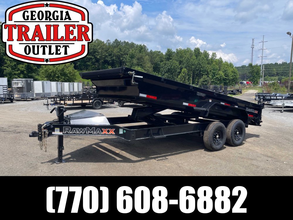 New 2025 RawMaxx 7ft x 16ft 14k Tandem Axle Bumper Pull Dump w/1.6ft walls & 2-Way Spreader Gate (Jet Black) High Quality Trailer Jet Black (w/ Primer) 2 - 7000-Lb Standard Spring Suspension w/EZ Lube Axle(s) (10PR Tires) Electric Forward Self-Adjusting Brakes on 2 Axles Steel Construction w/16-in Crossmembers (9-ga Steel Floor) 1 - Spring Loaded Drop Leg 10000 lb (1-Speed) Jack Steel Diamond Plate Fenders (Weld-On) LED Exterior Lighting Pkg (w/Cold Weather Harness) 2-Way Spreader Gate Rear Slide-In Ramps [7-ft x 16-in] Mesh Tarp Kit w/Pull Bar Scissor Hoist w/HD KTI Pump & 5 Amp Battery Charger 2-5/16-in Adjustable Coupler No haggle, no BS, no hidden fees, no nickel and diming. Call 770-608-6882, or visit www.georgiatraileroutlet.com Georgia Trailer Outlet 45 Carson Loop NW Cartersville, GA 30121 Contact us for warranty information.