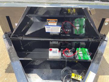 2-Way Spreader Gate, Rear Slide-In Ramps [7-ft x 16-in], Mesh Tarp Kit w/Pull Bar, Scissor Hoist w/HD KTI Pump & 5 Amp Battery Charger, 2-5/16-in Adjustable Coupler