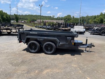 New 2026 Lamar 5ft x 10ft 7k Tandem Axle Bumper Pull Dump w/1.5ft walls & 2-Way Spreader Gate (Lamar Gray) High Quality Trailer Lamar Gray (w/ Primer) 2 - 3500-Lb Dexter Standard Spring Suspension w/EZ Lube Axle(s) (6PR Tires) Electric Forward Self-Adjusting Brakes on 2 Axles Steel Construction w/16-in Crossmembers (10-ga Steel Floor) 1 - Square Drop Leg 7000 lb Jack Steel Diamond Plate Fenders (Weld-On) LED Exterior Lighting Pkg (w/Cold Weather Harness) 2-Way Spreader Gate Rear Slide-In Ramps [5-ft x 12-in] Mesh Tarp Kit w/Pull Bar & Four Weld-On D-Rings Single Cylinder w/HD KTI Pump & 5 Amp Battery Charger 2-in Adjustable Coupler No haggle, no BS, no hidden fees, no nickel and diming. Call 770-608-6882, or visit www.georgiatraileroutlet.com Georgia Trailer Outlet 45 Carson Loop NW Cartersville, GA 30121 Contact us for warranty information.