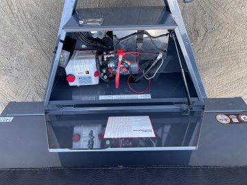 2-Way Spreader Gate, Rear Slide-In Ramps [5-ft x 12-in], Mesh Tarp Kit w/Pull Bar & Four Weld-On D-Rings, Single Cylinder w/HD KTI Pump & 5 Amp Battery Charger, 2-in Adjustable Coupler