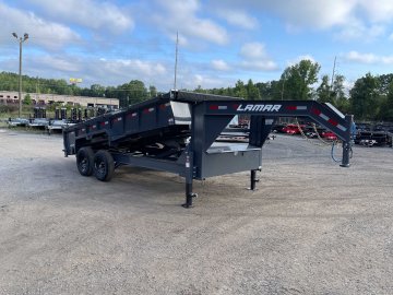 New 2026 Lamar 7ft x 16ft 14k Tandem Axle Gooseneck Dump w/2ft walls & 2-Way Spreader Gate (Lamar Gray) High Quality Trailer Lamar Gray (w/ Primer) 2 - 7000-Lb Dexter Standard Spring Suspension w/EZ Lube Axle(s) (10PR Tires) Electric Forward Self-Adjusting Brakes on 2 Axles Steel Construction w/16-in Crossmembers (7-ga Steel Floor) 2 - Spring Loaded Drop Leg 10000 lb (1-Speed) Jacks Steel Diamond Plate Fenders (Weld-On) LED Exterior Lighting Pkg (w/Cold Weather Harness) 2-Way Spreader Gate Rear Slide-In Ramps [7-ft x 16-in] Mesh Tarp Kit w/Pull Bar Scissor Hoist w/HD KTI Pump & 5 Amp Battery Charger 2-5/16-in Adjustable Coupler No haggle, no BS, no hidden fees, no nickel and diming. Call 770-608-6882, or visit www.georgiatraileroutlet.com Georgia Trailer Outlet 45 Carson Loop NW Cartersville, GA 30121 Contact us for warranty information.