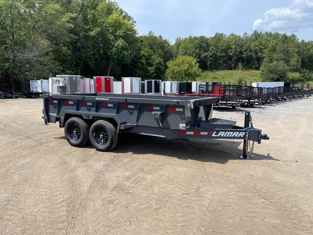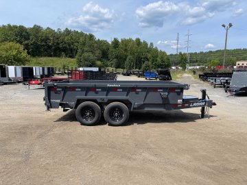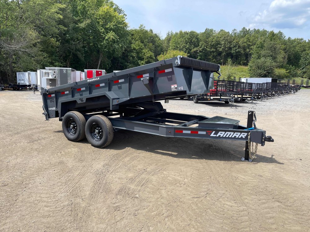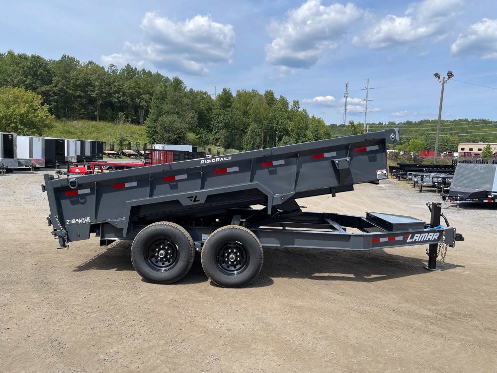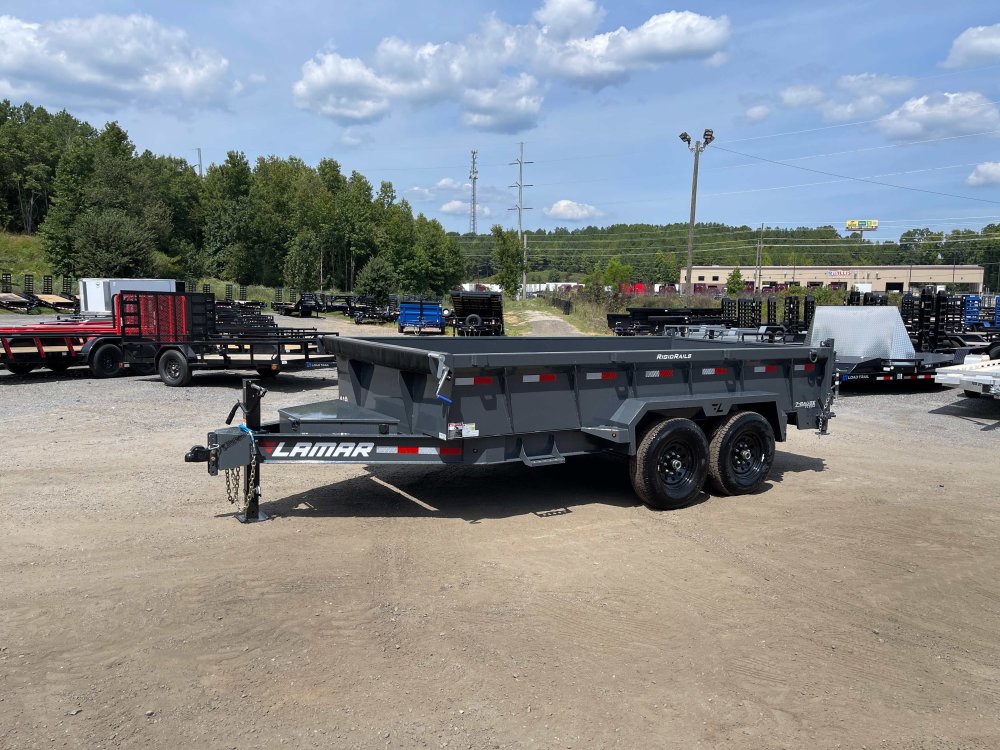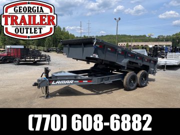 New 2026 Lamar 7ft x 14ft 14k Tandem Axle Bumper Pull Dump w/2ft walls & 2-Way Spreader Gate (Lamar Gray) High Quality Trailer Lamar Gray (w/ Primer) 2 - 7000-Lb Dexter Standard Spring Suspension w/EZ Lube Axle(s) (10PR Tires) Electric Forward Self-Adjusting Brakes on 2 Axles Steel Construction w/16-in Crossmembers (7-ga Steel Floor) 1 - Spring Loaded Drop Leg 10000 lb (1-Speed) Jack Steel Diamond Plate Fenders (Weld-On) LED Exterior Lighting Pkg (w/Cold Weather Harness) 2-Way Spreader Gate Rear Slide-In Ramps [7-ft x 16-in] Mesh Tarp Kit w/Pull Bar & Four Weld-On D-Rings Scissor Hoist w/HD KTI Pump & 5 Amp Battery Charger 2-5/16-in Adjustable Coupler No haggle, no BS, no hidden fees, no nickel and diming. Call 770-608-6882, or visit www.georgiatraileroutlet.com Georgia Trailer Outlet 45 Carson Loop NW Cartersville, GA 30121 Contact us for warranty information.