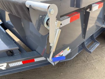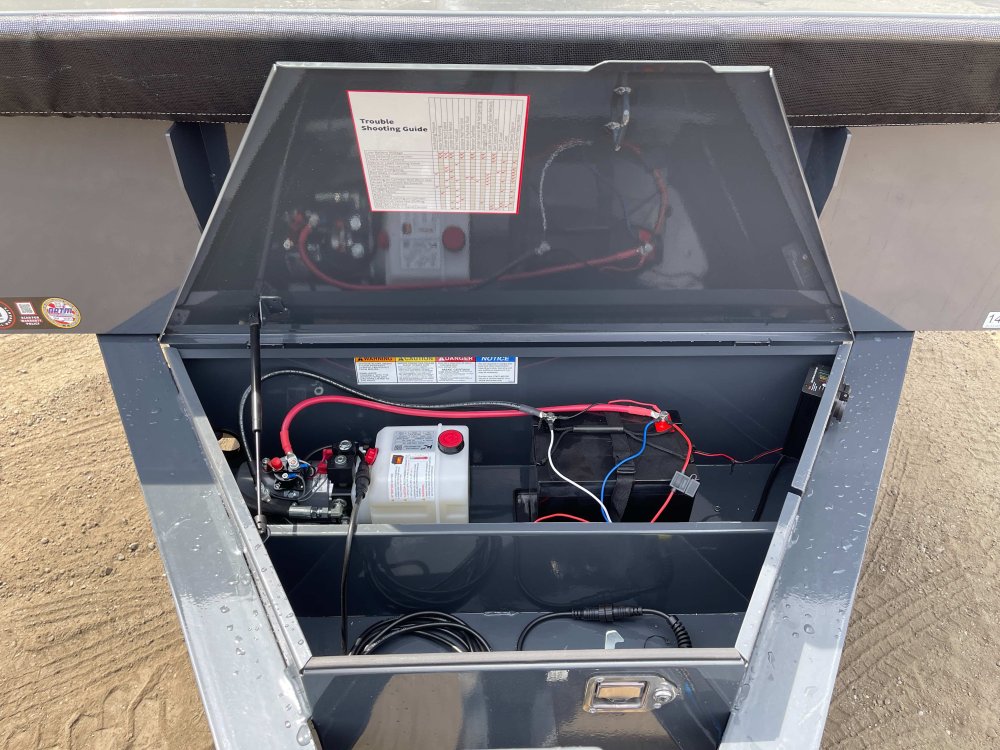 2-Way Spreader Gate, Rear Slide-In Ramps [7-ft x 16-in], Mesh Tarp Kit w/Pull Bar & Four Weld-On D-Rings, Scissor Hoist w/HD KTI Pump & 5 Amp Battery Charger, 2-5/16-in Adjustable Coupler