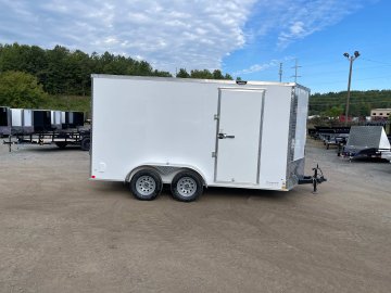 New 2026 Diamond Cargo 7ft x 14ft 7k Tandem Axle Bumper Pull Enclosed w/7ft walls & Ramp Door w/Spring Assist (White) High Quality Trailer White (84 in wall height) 2 - 3500-Lb Lippert Standard Spring Suspension w/EZ Lube Drop Axle(s) (6PR Tires) Electric Forward Self-Adjusting Brakes on 2 Axles Steel Frame / Aluminum Skin Construction w/16-in Crossmembers (3/4-in Plywood Floor) 1 - A-Frame Drop Leg 5000 lb Jack Bright Aluminum Diamond Plate Fenders LED Exterior Lighting Pkg (w/Cold Weather Harness) Ramp Door w/Spring Assist Upgraded R/H RV Entry Door Super Premium .080 Polycore Skin 4-D-Rings (Removable) 2-5/16-in A-Frame Cast Coupler No haggle, no BS, no hidden fees, no nickel and diming. Call 770-608-6882, or visit www.georgiatraileroutlet.com Georgia Trailer Outlet 45 Carson Loop NW Cartersville, GA 30121 Contact us for warranty information.