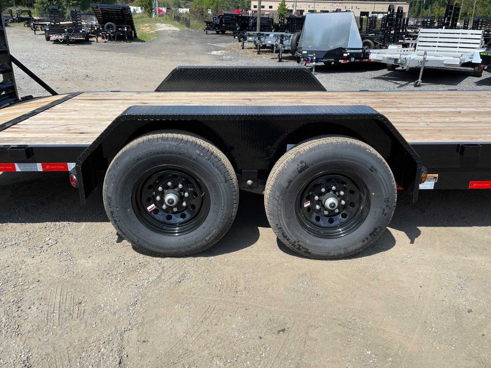 New 2026 Load Trail 7ft x 20ft 14k Tandem Axle Bumper Pull Hauler & HD Stand-Up Ramps [5-ft x 24-in] (Black) High Quality Trailer Black (w/ Primer) 2 - 7000-Lb Standard Spring Suspension w/EZ Lube Axle(s) (10PR Tires) Electric Forward Self-Adjusting Brakes on 2 Axles Steel Construction w/16-in Crossmembers (2-in PT Wood Floor) 1 - Spring Loaded Drop Leg 10000 lb (1-Speed) Jack Steel Diamond Plate Fenders (Removable) LED Exterior Lighting Pkg (w/Cold Weather Harness) HD Stand-Up Ramps [5-ft x 24-in] Black Mod Wheels 1-Spare Tire Mount (No Spare) 4-D-Rings (Weld-On) 2-5/16 25k Gooseneck Coupler No haggle, no BS, no hidden fees, no nickel and diming. Call 770-608-6882, or visit www.georgiatraileroutlet.com Georgia Trailer Outlet 45 Carson Loop NW Cartersville, GA 30121 Contact us for warranty information.