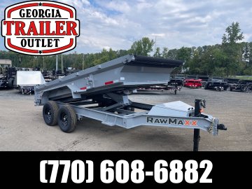 New 2026 RawMaxx 7ft x 14ft 14k Tandem Axle Bumper Pull Dump w/1.6ft walls & 2-Way Spreader Gate (Lava Gray) High Quality Trailer Lava Gray (w/ Primer) 2 - 7000-Lb Standard Spring Suspension w/EZ Lube Axle(s) (10PR Tires) Electric Forward Self-Adjusting Brakes on 2 Axles Steel Construction w/16-in Crossmembers (10-ga Steel Floor) 1 - Spring Loaded Drop Leg 10000 lb (1-Speed) Jack Steel Diamond Plate Fenders (Weld-On) LED Exterior Lighting Pkg (w/Cold Weather Harness) 2-Way Spreader Gate Rear Slide-In Ramps [6-ft x 16-in] Mesh Tarp Kit w/Pull Bar & Four Weld-On D-Rings Scissor Hoist w/HD KTI Pump & 5 Amp Battery Charger 2-5/16-in Adjustable Coupler No haggle, no BS, no hidden fees, no nickel and diming. Call 770-608-6882, or visit www.georgiatraileroutlet.com Georgia Trailer Outlet 45 Carson Loop NW Cartersville, GA 30121 Contact us for warranty information.