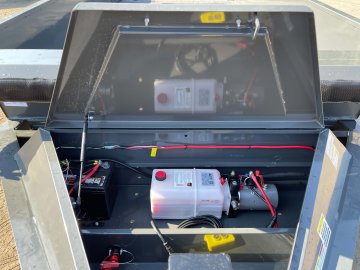 2-Way Spreader Gate, Rear Slide-In Ramps [6-ft x 16-in], Mesh Tarp Kit w/Pull Bar & Four Weld-On D-Rings, Scissor Hoist w/HD KTI Pump & 5 Amp Battery Charger, 2-5/16-in Adjustable Coupler