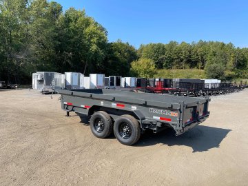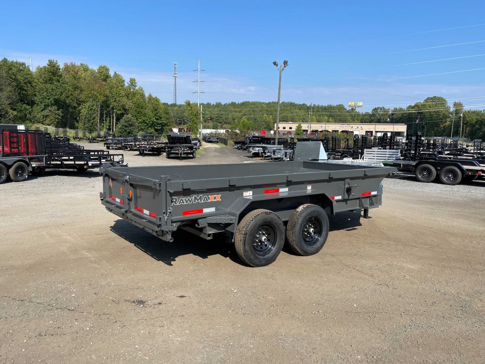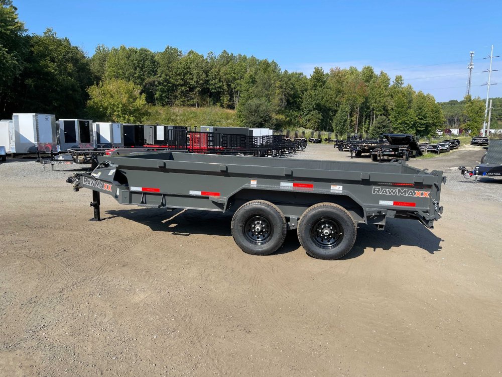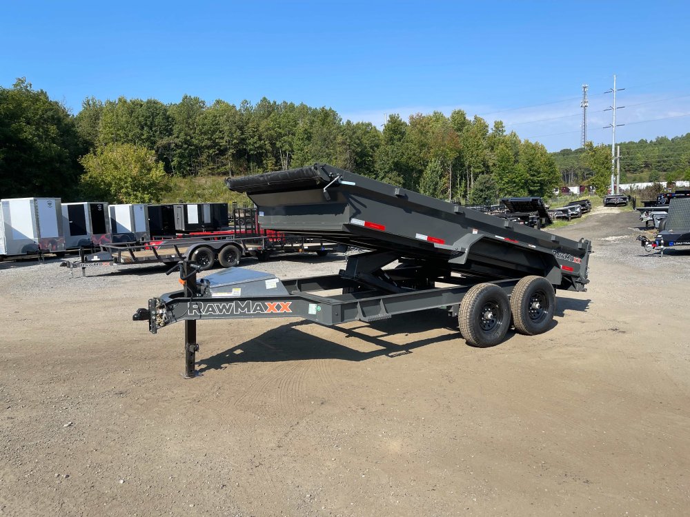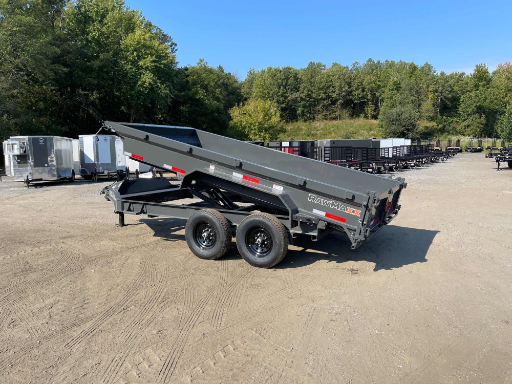 New 2026 RawMaxx 7ft x 14ft 14k Tandem Axle Bumper Pull Dump w/1.6ft walls & 2-Way Spreader Gate (Shadow Gray) High Quality Trailer Shadow Gray (w/ Primer) 2 - 7000-Lb Standard Spring Suspension w/EZ Lube Axle(s) (10PR Tires) Electric Forward Self-Adjusting Brakes on 2 Axles Steel Construction w/16-in Crossmembers (10-ga Steel Floor) 1 - Spring Loaded Drop Leg 10000 lb (1-Speed) Jack Steel Diamond Plate Fenders (Weld-On) LED Exterior Lighting Pkg (w/Cold Weather Harness) 2-Way Spreader Gate Rear Slide-In Ramps [6-ft x 16-in] Mesh Tarp Kit w/Pull Bar & Four Weld-On D-Rings Scissor Hoist w/HD KTI Pump & 5 Amp Battery Charger 2-5/16-in Adjustable Coupler No haggle, no BS, no hidden fees, no nickel and diming. Call 770-608-6882, or visit www.georgiatraileroutlet.com Georgia Trailer Outlet 45 Carson Loop NW Cartersville, GA 30121 Contact us for warranty information.