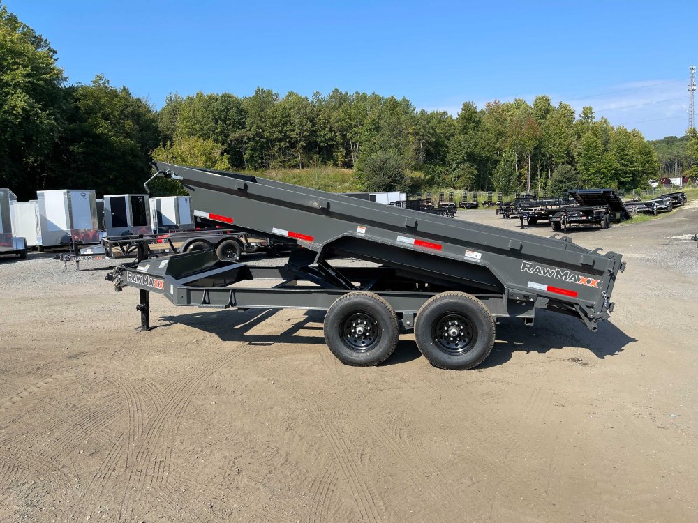 New 2026 RawMaxx 7ft x 14ft 14k Tandem Axle Bumper Pull Dump w/1.6ft walls & 2-Way Spreader Gate (Shadow Gray) High Quality Trailer Shadow Gray (w/ Primer) 2 - 7000-Lb Standard Spring Suspension w/EZ Lube Axle(s) (10PR Tires) Electric Forward Self-Adjusting Brakes on 2 Axles Steel Construction w/16-in Crossmembers (10-ga Steel Floor) 1 - Spring Loaded Drop Leg 10000 lb (1-Speed) Jack Steel Diamond Plate Fenders (Weld-On) LED Exterior Lighting Pkg (w/Cold Weather Harness) 2-Way Spreader Gate Rear Slide-In Ramps [6-ft x 16-in] Mesh Tarp Kit w/Pull Bar & Four Weld-On D-Rings Scissor Hoist w/HD KTI Pump & 5 Amp Battery Charger 2-5/16-in Adjustable Coupler No haggle, no BS, no hidden fees, no nickel and diming. Call 770-608-6882, or visit www.georgiatraileroutlet.com Georgia Trailer Outlet 45 Carson Loop NW Cartersville, GA 30121 Contact us for warranty information.
