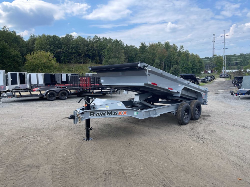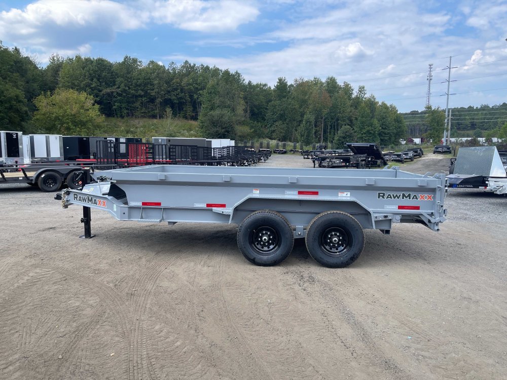 New 2026 RawMaxx 7ft x 14ft 14k Tandem Axle Bumper Pull Dump w/1.6ft walls & 2-Way Spreader Gate (Lava Gray) High Quality Trailer Lava Gray (w/ Primer) 2 - 7000-Lb Standard Spring Suspension w/EZ Lube Axle(s) (10PR Tires) Electric Forward Self-Adjusting Brakes on 2 Axles Steel Construction w/16-in Crossmembers (10-ga Steel Floor) 1 - Spring Loaded Drop Leg 10000 lb (1-Speed) Jack Steel Diamond Plate Fenders (Weld-On) LED Exterior Lighting Pkg (w/Cold Weather Harness) 2-Way Spreader Gate Rear Slide-In Ramps [6-ft x 16-in] Mesh Tarp Kit w/Pull Bar & Four Weld-On D-Rings Scissor Hoist w/HD KTI Pump & 5 Amp Battery Charger 2-5/16-in Adjustable Coupler No haggle, no BS, no hidden fees, no nickel and diming. Call 770-608-6882, or visit www.georgiatraileroutlet.com Georgia Trailer Outlet 45 Carson Loop NW Cartersville, GA 30121 Contact us for warranty information.