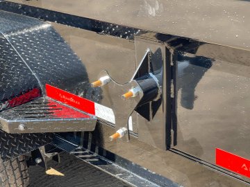 2-Way Spreader Gate, Rear Slide-In Ramps [6-ft x 16-in], Mesh Tarp Kit w/Pull Bar & Four Weld-On D-Rings, Scissor Hoist w/HD KTI Pump & 5 Amp Battery Charger, 2-5/16-in Adjustable Coupler
