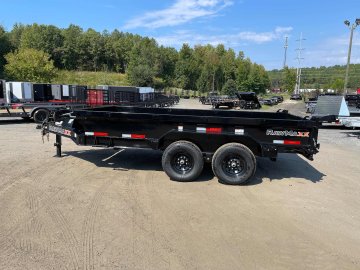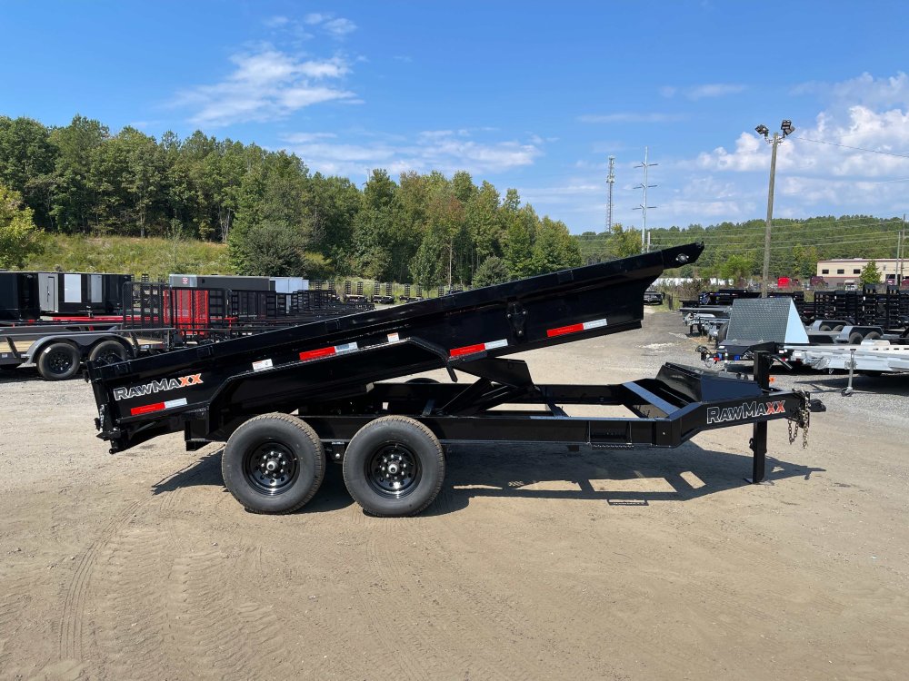 New 2026 RawMaxx 7ft x 14ft 14k Tandem Axle Bumper Pull Dump w/1.6ft walls & 2-Way Spreader Gate (Jet Black) High Quality Trailer Jet Black (w/ Primer) 2 - 7000-Lb Standard Spring Suspension w/EZ Lube Axle(s) (10PR Tires) Electric Forward Self-Adjusting Brakes on 2 Axles Steel Construction w/16-in Crossmembers (10-ga Steel Floor) 1 - Spring Loaded Drop Leg 10000 lb (1-Speed) Jack Steel Diamond Plate Fenders (Weld-On) LED Exterior Lighting Pkg (w/Cold Weather Harness) 2-Way Spreader Gate Rear Slide-In Ramps [6-ft x 16-in] Mesh Tarp Kit w/Pull Bar & Four Weld-On D-Rings Scissor Hoist w/HD KTI Pump & 5 Amp Battery Charger 2-5/16-in Adjustable Coupler No haggle, no BS, no hidden fees, no nickel and diming. Call 770-608-6882, or visit www.georgiatraileroutlet.com Georgia Trailer Outlet 45 Carson Loop NW Cartersville, GA 30121 Contact us for warranty information.