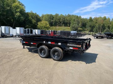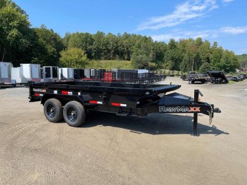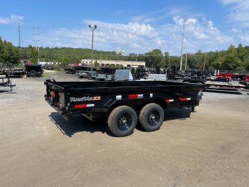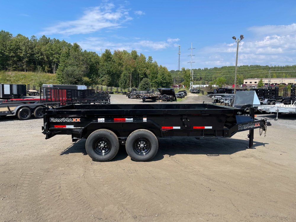 New 2026 RawMaxx 7ft x 14ft 14k Tandem Axle Bumper Pull Dump w/1.6ft walls & 2-Way Spreader Gate (Jet Black) High Quality Trailer Jet Black (w/ Primer) 2 - 7000-Lb Standard Spring Suspension w/EZ Lube Axle(s) (10PR Tires) Electric Forward Self-Adjusting Brakes on 2 Axles Steel Construction w/16-in Crossmembers (10-ga Steel Floor) 1 - Spring Loaded Drop Leg 10000 lb (1-Speed) Jack Steel Diamond Plate Fenders (Weld-On) LED Exterior Lighting Pkg (w/Cold Weather Harness) 2-Way Spreader Gate Rear Slide-In Ramps [6-ft x 16-in] Mesh Tarp Kit w/Pull Bar & Four Weld-On D-Rings Scissor Hoist w/HD KTI Pump & 5 Amp Battery Charger 2-5/16-in Adjustable Coupler No haggle, no BS, no hidden fees, no nickel and diming. Call 770-608-6882, or visit www.georgiatraileroutlet.com Georgia Trailer Outlet 45 Carson Loop NW Cartersville, GA 30121 Contact us for warranty information.