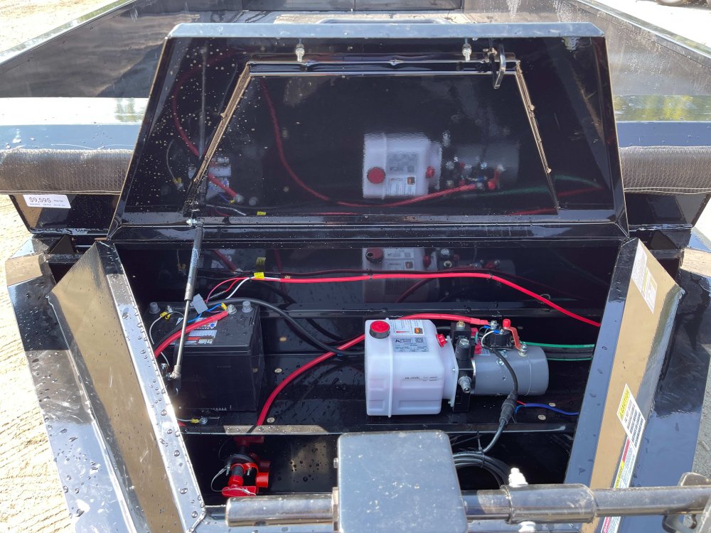 2-Way Spreader Gate, Rear Slide-In Ramps [6-ft x 16-in], Mesh Tarp Kit w/Pull Bar & Four Weld-On D-Rings, Scissor Hoist w/HD KTI Pump & 5 Amp Battery Charger, 2-5/16-in Adjustable Coupler