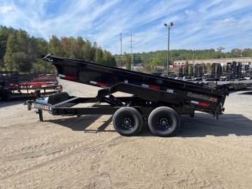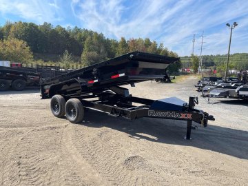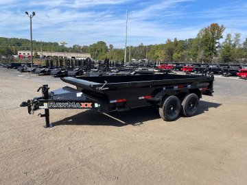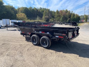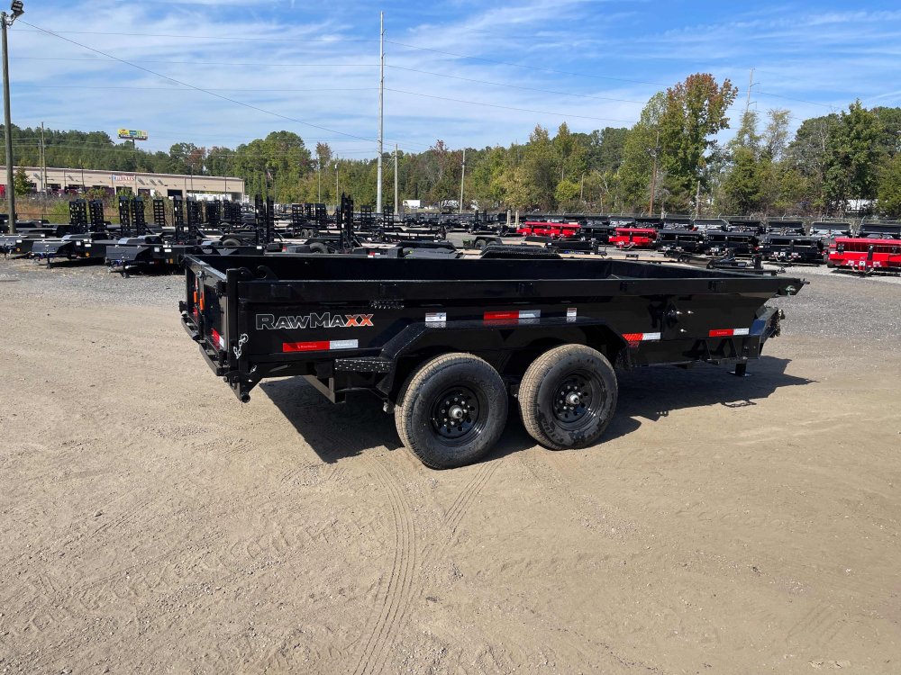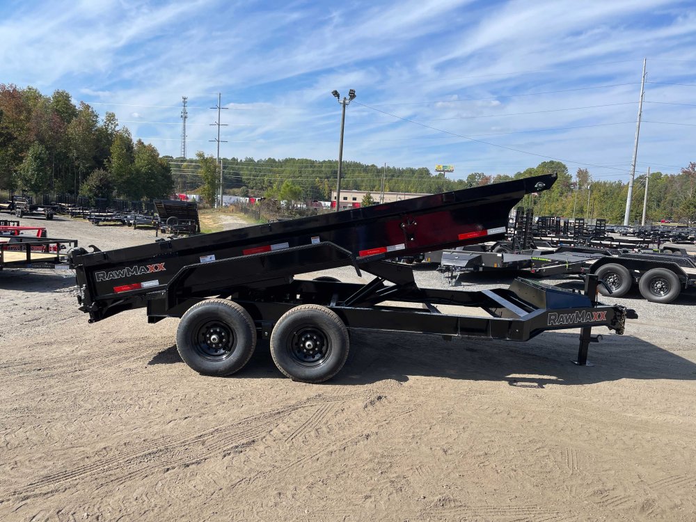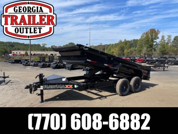 New 2026 RawMaxx 7ft x 14ft 14k Tandem Axle Bumper Pull Dump w/1.6ft walls & 2-Way Spreader Gate (Jet Black) High Quality Trailer Jet Black (w/ Primer) 2 - 7000-Lb Standard Spring Suspension w/EZ Lube Axle(s) (10PR Tires) Electric Forward Self-Adjusting Brakes on 2 Axles Steel Construction w/16-in Crossmembers (9-ga Steel Floor) 1 - Spring Loaded Drop Leg 10000 lb (1-Speed) Jack Steel Diamond Plate Fenders (Weld-On) LED Exterior Lighting Pkg (w/Cold Weather Harness) 2-Way Spreader Gate Rear Slide-In Ramps [6-ft x 16-in] Mesh Tarp Kit w/Pull Bar & Four Weld-On D-Rings Scissor Hoist w/HD KTI Pump & 5 Amp Battery Charger 2-5/16-in Adjustable Coupler No haggle, no BS, no hidden fees, no nickel and diming. Call 770-608-6882, or visit www.georgiatraileroutlet.com Georgia Trailer Outlet 45 Carson Loop NW Cartersville, GA 30121 Contact us for warranty information.