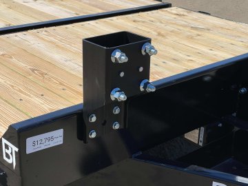 Gravity Tilt Ramp [83-in x 16-ft], 4-ft Stationary Deck, HD Fork Holders, 1-Spare Tire Mount (No Spare), 2-5/16-in Adjustable Coupler