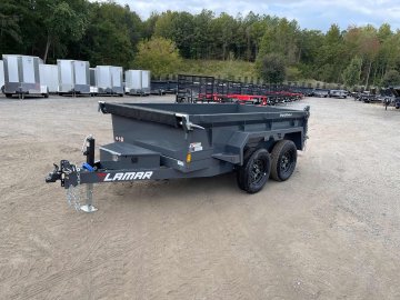 New 2026 Lamar 5ft x 10ft 7k Tandem Axle Bumper Pull Dump w/1.5ft walls & 2-Way Spreader Gate (Lamar Gray) High Quality Trailer Lamar Gray (w/ Primer) 2 - 3500-Lb Dexter Standard Spring Suspension w/EZ Lube Axle(s) (6PR Tires) Electric Forward Self-Adjusting Brakes on 2 Axles Steel Construction w/16-in Crossmembers (10-ga Steel Floor) 1 - Square Drop Leg 7000 lb Jack Steel Diamond Plate Fenders (Weld-On) LED Exterior Lighting Pkg (w/Cold Weather Harness) 2-Way Spreader Gate Rear Slide-In Ramps [5-ft x 12-in] Mesh Tarp Kit w/Pull Bar & Four Weld-On D-Rings Single Cylinder w/HD KTI Pump & 5 Amp Battery Charger 2-5/16-in Adjustable Coupler No haggle, no BS, no hidden fees, no nickel and diming. Call 770-608-6882, or visit www.georgiatraileroutlet.com Georgia Trailer Outlet 45 Carson Loop NW Cartersville, GA 30121 Contact us for warranty information.