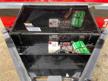 2-Way Spreader Gate, Rear Slide-In Ramps [7-ft x 16-in] & Support Stands, Mesh Tarp Kit w/Pull Bar & Six Weld-On D-Rings, Scissor Hoist w/HD KTI Pump & 5 Amp Battery Charger, 2-5/16-in Adjustable Coupler