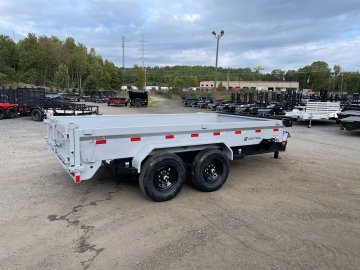 New 2026 Load Trail 7ft x 14ft 14k Tandem Axle Bumper Pull Dump w/1.5ft walls & 2-Way Spreader Gate (Bomber Gray) High Quality Trailer Bomber Gray (w/ Primer) 2 - 7000-Lb Standard Spring Suspension w/EZ Lube Axle(s) (10PR Tires) Electric Forward Self-Adjusting Brakes on 2 Axles Steel Construction w/16-in Crossmembers (10-ga Steel Floor) 1 - Spring Loaded Drop Leg 10000 lb (1-Speed) Jack Steel Diamond Plate Fenders (Weld-On) LED Exterior Lighting Pkg (w/Cold Weather Harness) 2-Way Spreader Gate Rear Slide-In Ramps [7-ft x 16-in] & Support Stands Mesh Tarp Kit w/Pull Bar & Four Weld-On D-Rings Scissor Hoist w/HD KTI Pump & 5 Amp Battery Charger 2-5/16-in Adjustable Coupler No haggle, no BS, no hidden fees, no nickel and diming. Call 770-608-6882, or visit www.georgiatraileroutlet.com Georgia Trailer Outlet 45 Carson Loop NW Cartersville, GA 30121 Contact us for warranty information.