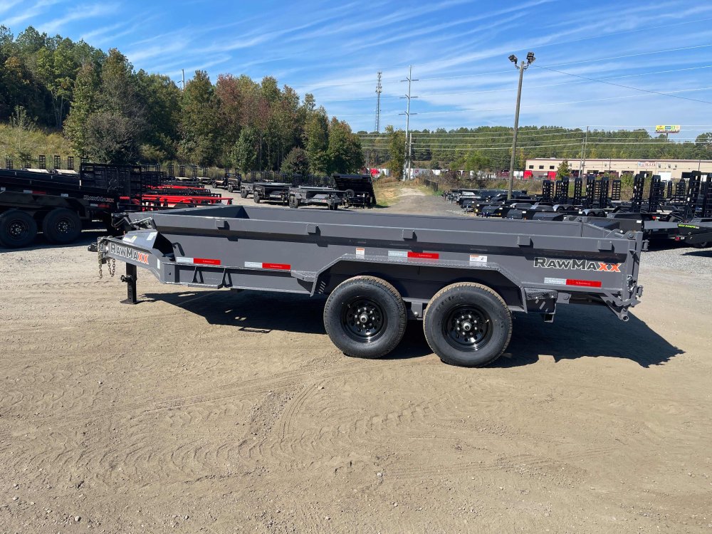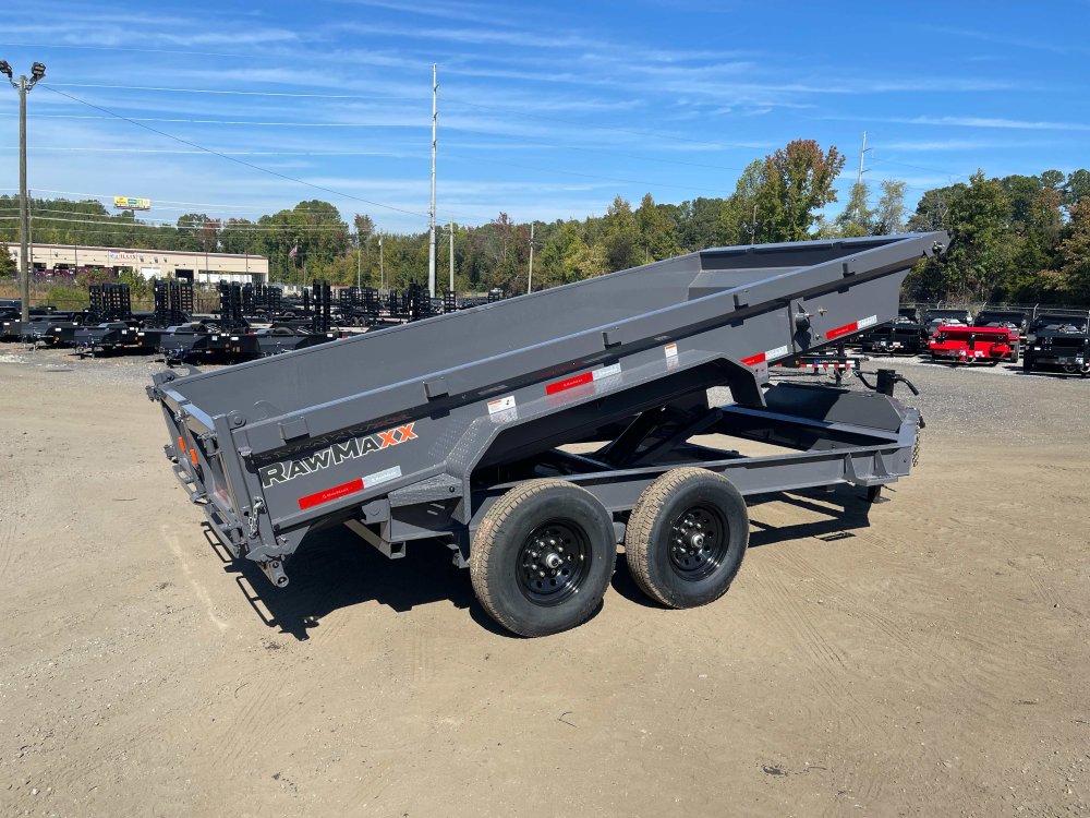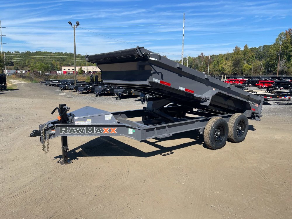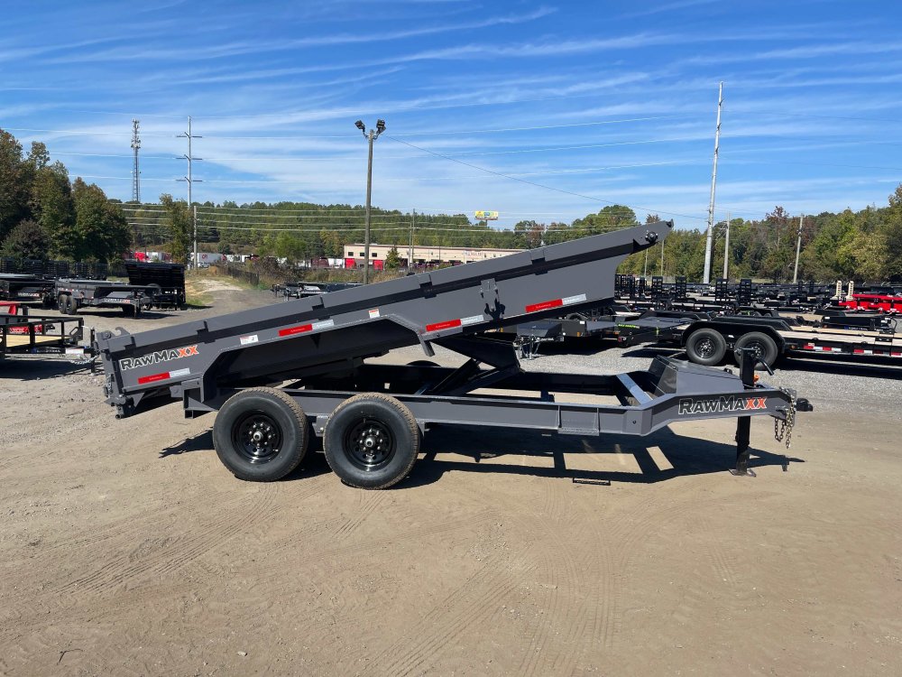 New 2026 RawMaxx 7ft x 14ft 14k Tandem Axle Bumper Pull Dump w/1.6ft walls & 2-Way Spreader Gate (Shadow Gray) High Quality Trailer Shadow Gray (w/ Primer) 2 - 7000-Lb Standard Spring Suspension w/EZ Lube Axle(s) (10PR Tires) Electric Forward Self-Adjusting Brakes on 2 Axles Steel Construction w/16-in Crossmembers (10-ga Steel Floor) 1 - Spring Loaded Drop Leg 10000 lb (1-Speed) Jack Steel Diamond Plate Fenders (Weld-On) LED Exterior Lighting Pkg (w/Cold Weather Harness) 2-Way Spreader Gate Rear Slide-In Ramps [5-ft x 12-in] Mesh Tarp Kit w/Pull Bar & Four Weld-On D-Rings Scissor Hoist w/HD KTI Pump & 5 Amp Battery Charger 2-5/16-in Adjustable Coupler No haggle, no BS, no hidden fees, no nickel and diming. Call 770-608-6882, or visit www.georgiatraileroutlet.com Georgia Trailer Outlet 45 Carson Loop NW Cartersville, GA 30121 Contact us for warranty information.