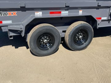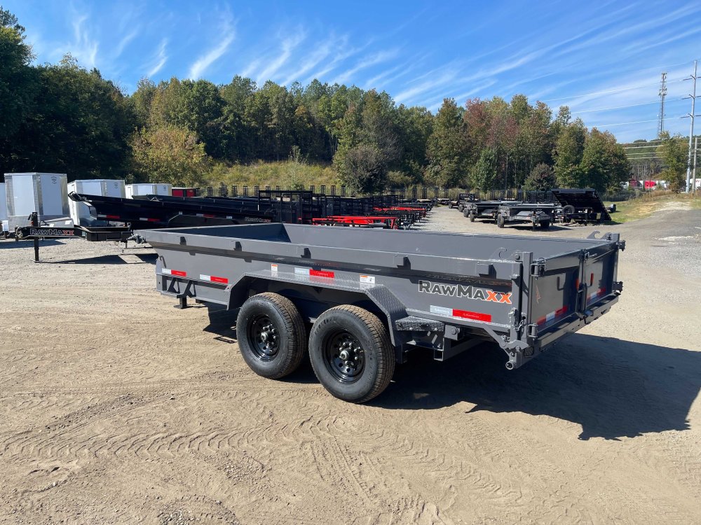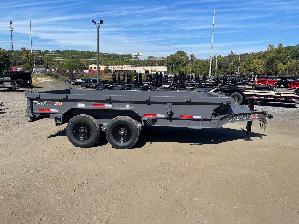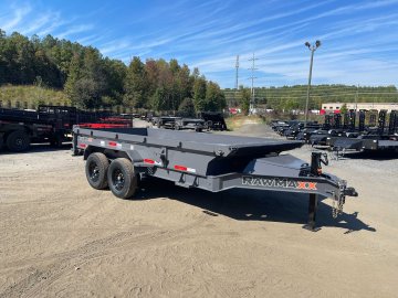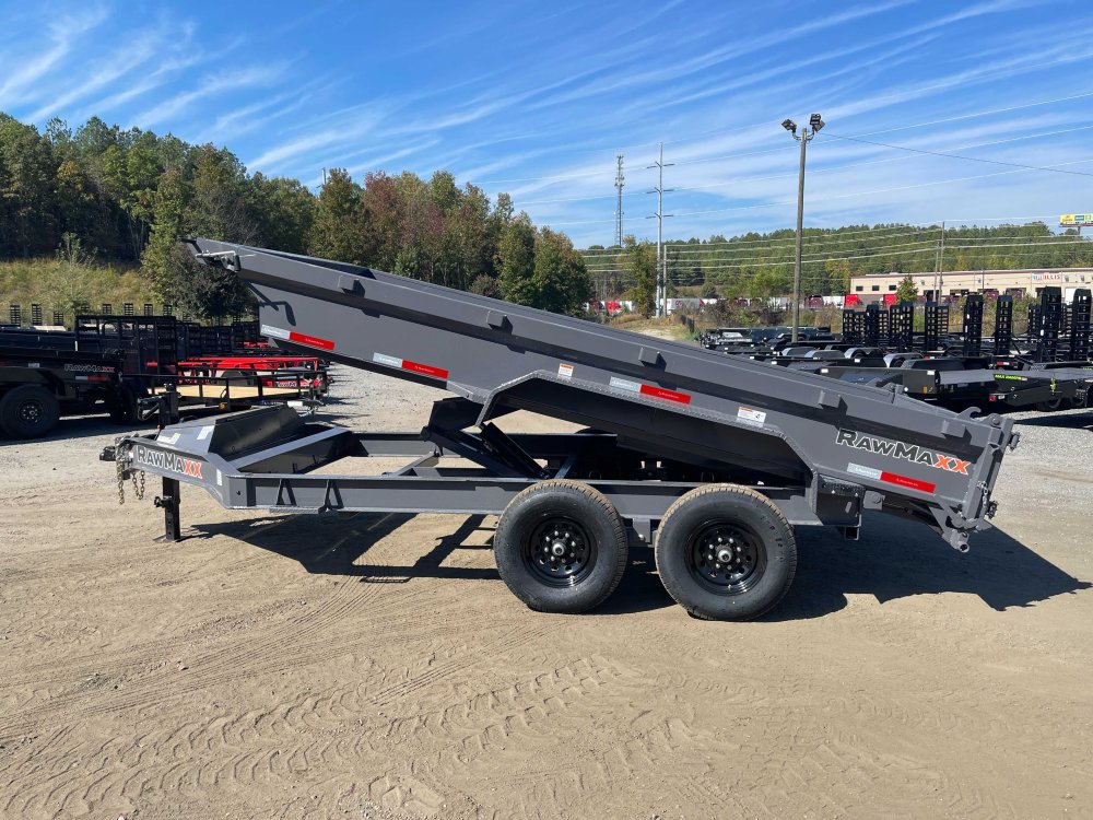 New 2026 RawMaxx 7ft x 14ft 14k Tandem Axle Bumper Pull Dump w/1.6ft walls & 2-Way Spreader Gate (Shadow Gray) High Quality Trailer Shadow Gray (w/ Primer) 2 - 7000-Lb Standard Spring Suspension w/EZ Lube Axle(s) (10PR Tires) Electric Forward Self-Adjusting Brakes on 2 Axles Steel Construction w/16-in Crossmembers (10-ga Steel Floor) 1 - Spring Loaded Drop Leg 10000 lb (1-Speed) Jack Steel Diamond Plate Fenders (Weld-On) LED Exterior Lighting Pkg (w/Cold Weather Harness) 2-Way Spreader Gate Rear Slide-In Ramps [5-ft x 12-in] Mesh Tarp Kit w/Pull Bar & Four Weld-On D-Rings Scissor Hoist w/HD KTI Pump & 5 Amp Battery Charger 2-5/16-in Adjustable Coupler No haggle, no BS, no hidden fees, no nickel and diming. Call 770-608-6882, or visit www.georgiatraileroutlet.com Georgia Trailer Outlet 45 Carson Loop NW Cartersville, GA 30121 Contact us for warranty information.