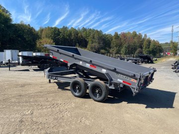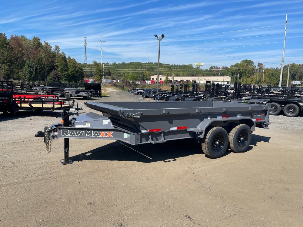 New 2026 RawMaxx 7ft x 14ft 14k Tandem Axle Bumper Pull Dump w/1.6ft walls & 2-Way Spreader Gate (Shadow Gray) High Quality Trailer Shadow Gray (w/ Primer) 2 - 7000-Lb Standard Spring Suspension w/EZ Lube Axle(s) (10PR Tires) Electric Forward Self-Adjusting Brakes on 2 Axles Steel Construction w/16-in Crossmembers (10-ga Steel Floor) 1 - Spring Loaded Drop Leg 10000 lb (1-Speed) Jack Steel Diamond Plate Fenders (Weld-On) LED Exterior Lighting Pkg (w/Cold Weather Harness) 2-Way Spreader Gate Rear Slide-In Ramps [5-ft x 12-in] Mesh Tarp Kit w/Pull Bar & Four Weld-On D-Rings Scissor Hoist w/HD KTI Pump & 5 Amp Battery Charger 2-5/16-in Adjustable Coupler No haggle, no BS, no hidden fees, no nickel and diming. Call 770-608-6882, or visit www.georgiatraileroutlet.com Georgia Trailer Outlet 45 Carson Loop NW Cartersville, GA 30121 Contact us for warranty information.