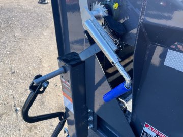 2-Way Spreader Gate, Rear Slide-In Ramps [5-ft x 12-in], Mesh Tarp Kit w/Pull Bar & Four Weld-On D-Rings, Scissor Hoist w/HD KTI Pump & 5 Amp Battery Charger, 2-5/16 25k Gooseneck Coupler
