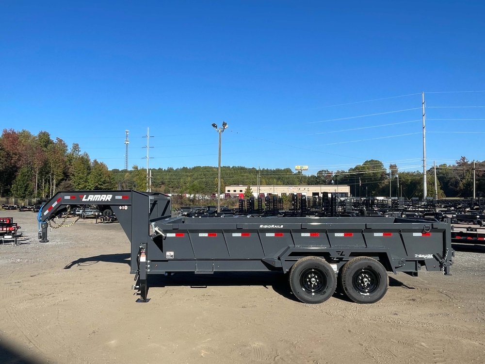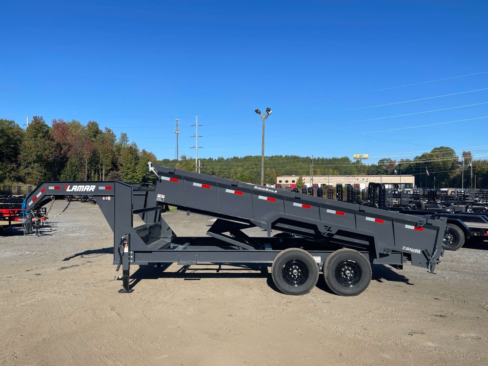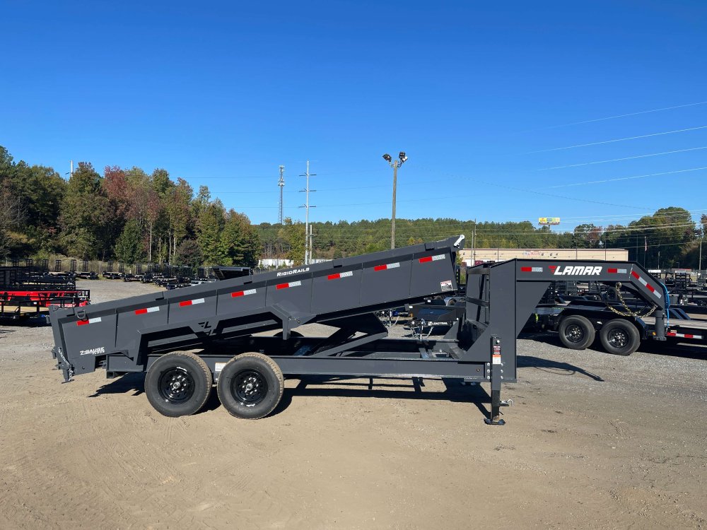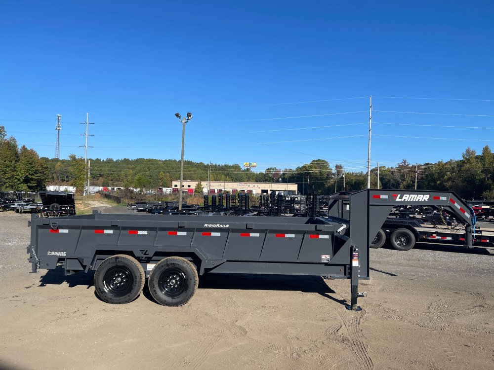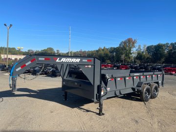 New 2026 Lamar 7ft x 16ft 14k Tandem Axle Gooseneck Dump w/2ft walls & 2-Way Spreader Gate (Lamar Gray) High Quality Trailer Lamar Gray (w/ Primer) 2 - 7000-Lb Dexter Standard Spring Suspension w/EZ Lube Axle(s) (10PR Tires) Electric Forward Self-Adjusting Brakes on 2 Axles Steel Construction w/16-in Crossmembers (7-ga Steel Floor) 2 - Spring Loaded Drop Leg 10000 lb (1-Speed) Jacks Steel Diamond Plate Fenders (Weld-On) LED Exterior Lighting Pkg (w/Cold Weather Harness) 2-Way Spreader Gate Rear Slide-In Ramps [5-ft x 12-in] Mesh Tarp Kit w/Pull Bar & Four Weld-On D-Rings Scissor Hoist w/HD KTI Pump & 5 Amp Battery Charger 2-5/16 25k Gooseneck Coupler No haggle, no BS, no hidden fees, no nickel and diming. Call 770-608-6882, or visit www.georgiatraileroutlet.com Georgia Trailer Outlet 45 Carson Loop NW Cartersville, GA 30121 Contact us for warranty information.