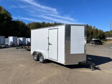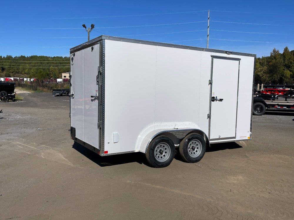 New 2026 Diamond Cargo 7ft x 14ft 7k Tandem Axle Bumper Pull Enclosed w/7ft walls & Ramp Door w/Spring Assist (White) High Quality Trailer White (84 in wall height) 2 - 3500-Lb Lippert Standard Spring Suspension w/EZ Lube Drop Axle(s) (6PR Tires) Electric Forward Self-Adjusting Brakes on 2 Axles Steel Frame / Aluminum Skin Construction w/16-in Crossmembers (3/4-in Plywood Floor) 1 - A-Frame Drop Leg 5000 lb Jack Bright Aluminum Diamond Plate Fenders LED Exterior Lighting Pkg (w/Cold Weather Harness) Ramp Door w/Spring Assist Upgraded R/H RV Entry Door Super Premium .080 Polycore Skin 4-D-Rings (Removable) 2-5/16-in A-Frame Cast Coupler No haggle, no BS, no hidden fees, no nickel and diming. Call 770-608-6882, or visit www.georgiatraileroutlet.com Georgia Trailer Outlet 45 Carson Loop NW Cartersville, GA 30121 Contact us for warranty information.