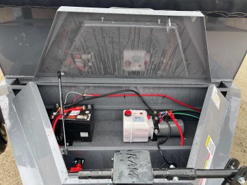 2-Way Spreader Gate, Rear Slide-In Ramps [7-ft x 16-in] & Spare Tire Mount w/Spare, Engineered I-Beam Frame & Mesh Tarp Kit w/Pull Bar, Scissor Hoist w/HD KTI Pump & 5 Amp Battery Charger, 2-5/16-in Adjustable Coupler