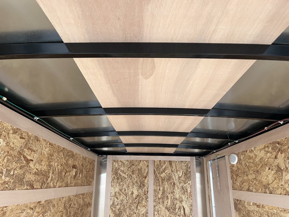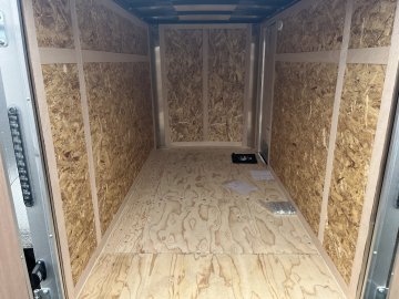 Standard Features Steel Framed Walls, Floor & Roof 3/8" Engineered Wood Paneling On Walls (24" o/c) Double Rear Doors 3/4 Plywood Floor (24" o/c) Semi Style Camlock Door Latch on Rear Doors ATP Exterior Aluminum Fenders Leaf-Spring Axles Clear Lens LED Clearance Lights All-Wheel Electric Brakes w/Breakaway* Clear Lens LED Strip Tail Lights 12-Volt Breakaway Switch with Battery* .030 White Aluminum Exterior (Additional Charge for Color) *On Models Requiring Brakes Black, Charcoal, Diamond Ice And Red Exterior Colors Available Silver Powder Coated Wheels Aluminum Wrap on Rear Corners & Header Black Center Caps Undercoated Frame Radial Tires Tongue Jack w/ Sand Pad Galvanized Roof Welded Safety Chains C/S Door (24" on 5 wide) Steel Sealed Sidewalls (32" on 6 wide, 36" on 7 & 8 wide) 12" Stoneguard 1 - Interior LED Dome Light