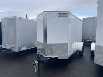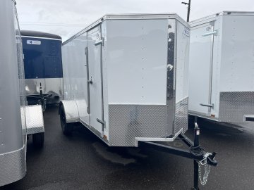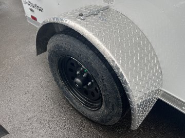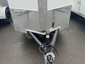 Standard Features Double Rear Doors License Plate Holder with Built-In Light 18" Wedge-Front Nose .030 White Aluminum Exterior C/S Door (24" on 5 wide) ATP Aluminum Wrap on rear (32" on 6 wide, 36" on 7 & 8 wide) Exposed Steel Painted Epoxy Black Semi-Style Camlock Door Latch Undercoated Frame Door Hold-Back on Rear Door Tongue Jack w/ Sand Pad Leaf-Spring Axle Welded Safety Chains Silver Powder Coated Wheels Full-Color Decals Radial Tires Galvanized Roof 8'6" Wides include: Aluminum Top Rails 102" Wide Body Design 16" ATP Stoneguard Ramp Door with Spring Assist 1 - 12V LED Dome Light No-Show Beavertail 2 - Flow Thru Sidewall Vents 36" Side Door with Steel Step DOT Lighting 2-12 Volt LED Dome Lights Aluminum Exterior Fenders 1-12 Volt Switch Clear Lens LED Clearance Lights 1-Roof Vent in addition to Side Vents Clear Lens LED Strip Tail Lights