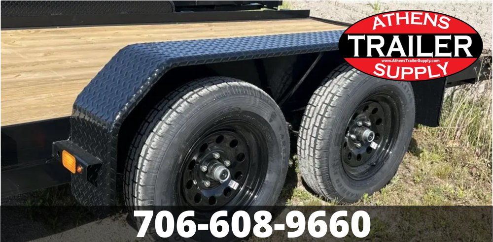 CURRAHEE TRAILERS 7’X18’ CAR HAULER - 2 - 3500# Brake Axles, 2 x 8 Pressure Treated Wood Floor,5 x 3 x 1/4 Angle Main Rail,3 x 2 x 3/16 Angle Crossmembers, 5' Rear Slide-In Ramps, 2-5/16" A-Frame Coupler, Standard Loops/Stake Pockets, A-Frame Tongue Jack, D.O.T. Approved LED Lighting, Fenders with Backing, 7-Way Plug, (4) 205/75R15 Radial Tires, Black Mod Wheels, Tail Light Protectors, Breakaway Kit,