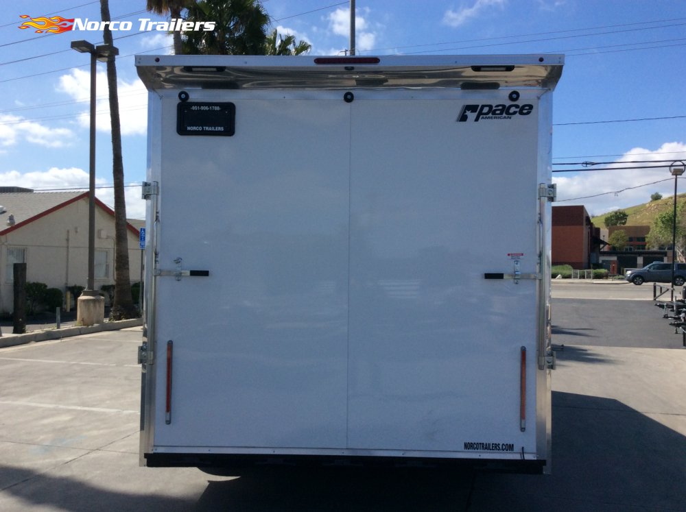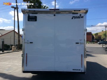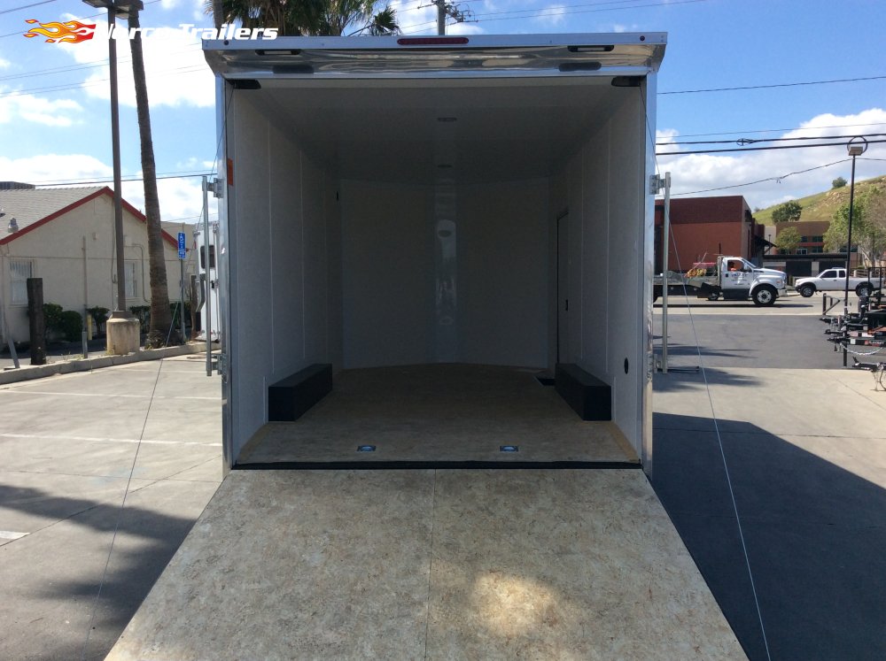 Upgraded with: 96" rear door, 12" extended tongue, Alloy Wheels, Dovetail, Drymax Floor, Drymax Walls, Ramp Door, Rear Load Lights, Screwless Exterior, Side Door, Tie downs, Torsion Suspension, White Vinyl Walls, White Vinyl Ceiling,