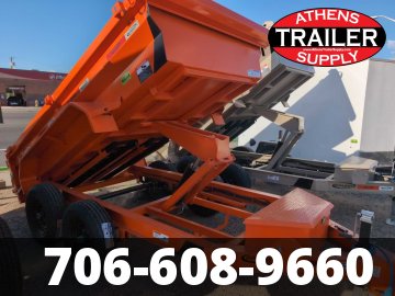 2024 Dump Trailer Bumper Pull 5 x 10 * COLOR: ORANGE - Powder coat superior paint finish * Extra large capacity 68" wide top box 11 gauge smooth plate flooring * Engineered with 6” Ultra Strong I Beam Frame. * 20" tall fully formed sides 12 gauge top rail 2.75" x 4.25" * Dual Acting Power Hydraulic 5” x 16.5” x 2” cylinder w/scissor hoist. * Adjustable rear spreader gate & barn doors. * Double handle for spreader gate. Lockable 2 cu. ft. tool box. * 5,200 lbs Tandem axles includes electric brakes. * Multi-leaf spring suspension with equalizer.ST225/75 R15 LRE Tires. * 7,000 lbs Adjustable leg crank jack. Safety brake-away system w/cable. * Diamond plate fenders. * Charger pump, battery & remote control included. * HD ramps quick access 6'5" long (included) * Easy-load extra low 25" deck height. Adjustable (6-Hole) coupler 2- 5/16" * Fender, side & rear LED markers (11) DOT approved. * Spare wheel & tire ST225/75 R15 LRE 10 Ply Tire * Black Mesh Tarp installed, Safe and Secure Tag Bracket & Light on Undercarriage